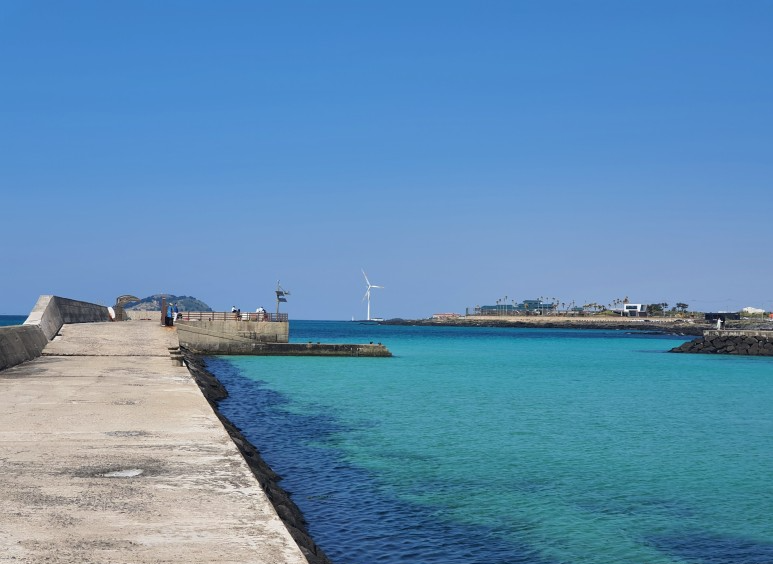 제주 스노클링 스팟 판포포구에서는 멀리 비양도도 보여요.