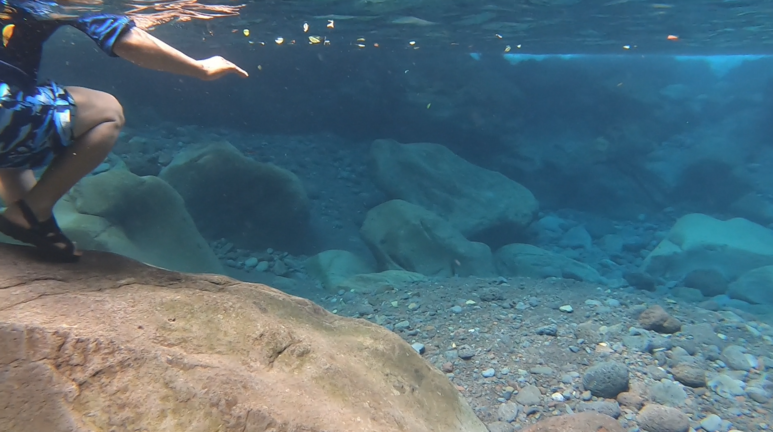 물 밖에서 찍은 사진이 아니라, 물 속에서 찍은 사진인데, 엄청나게 맑은 원앙폭포의 계곡물이에요.