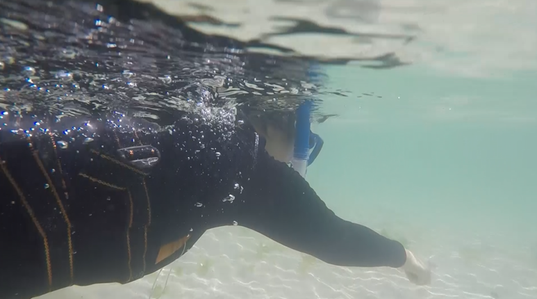 손, 발을 담그고 물놀이를 즐길 수도 있지만, 스노클링을 끼고 왔다갔다 즐길 수도 있어요.