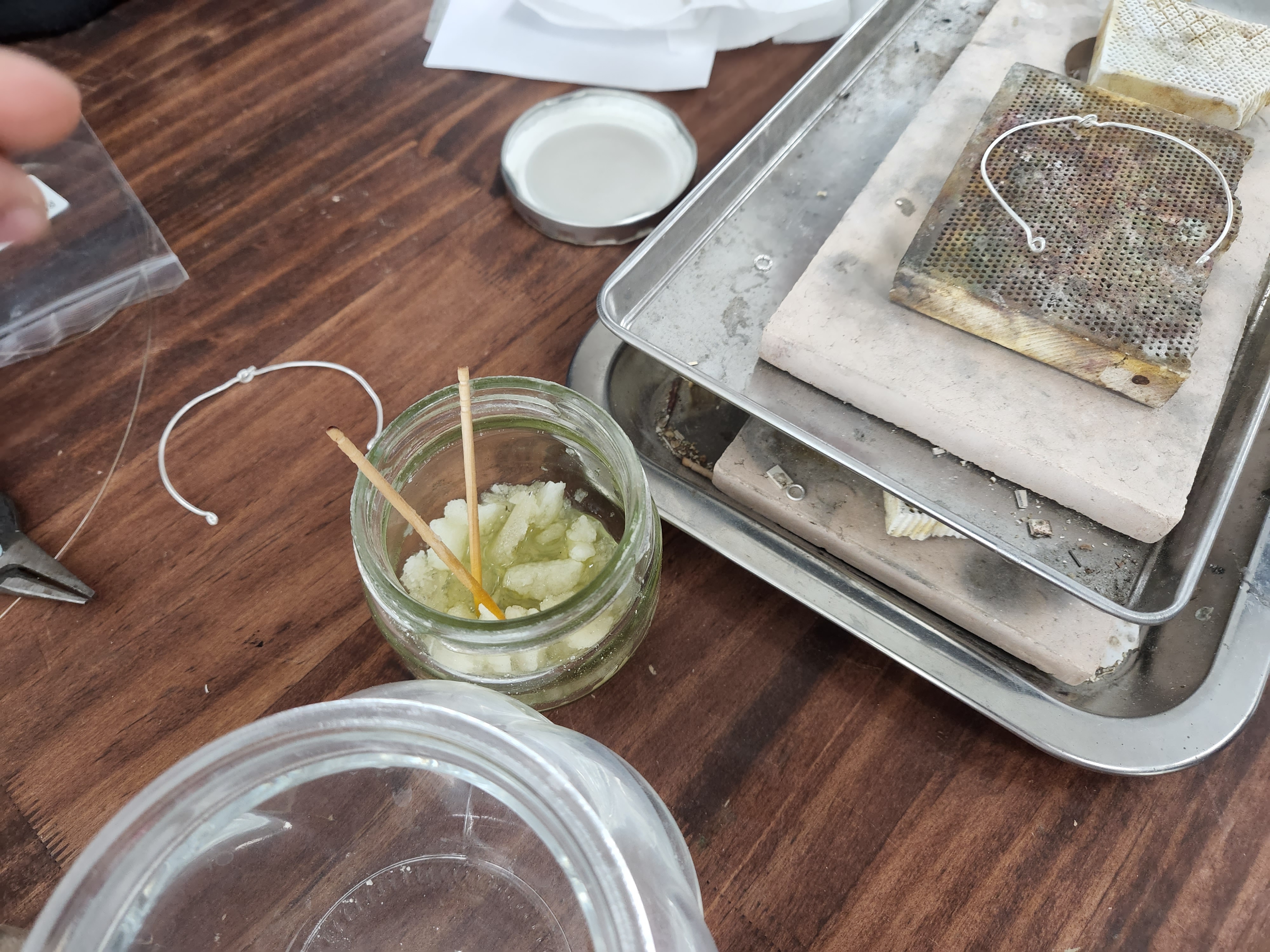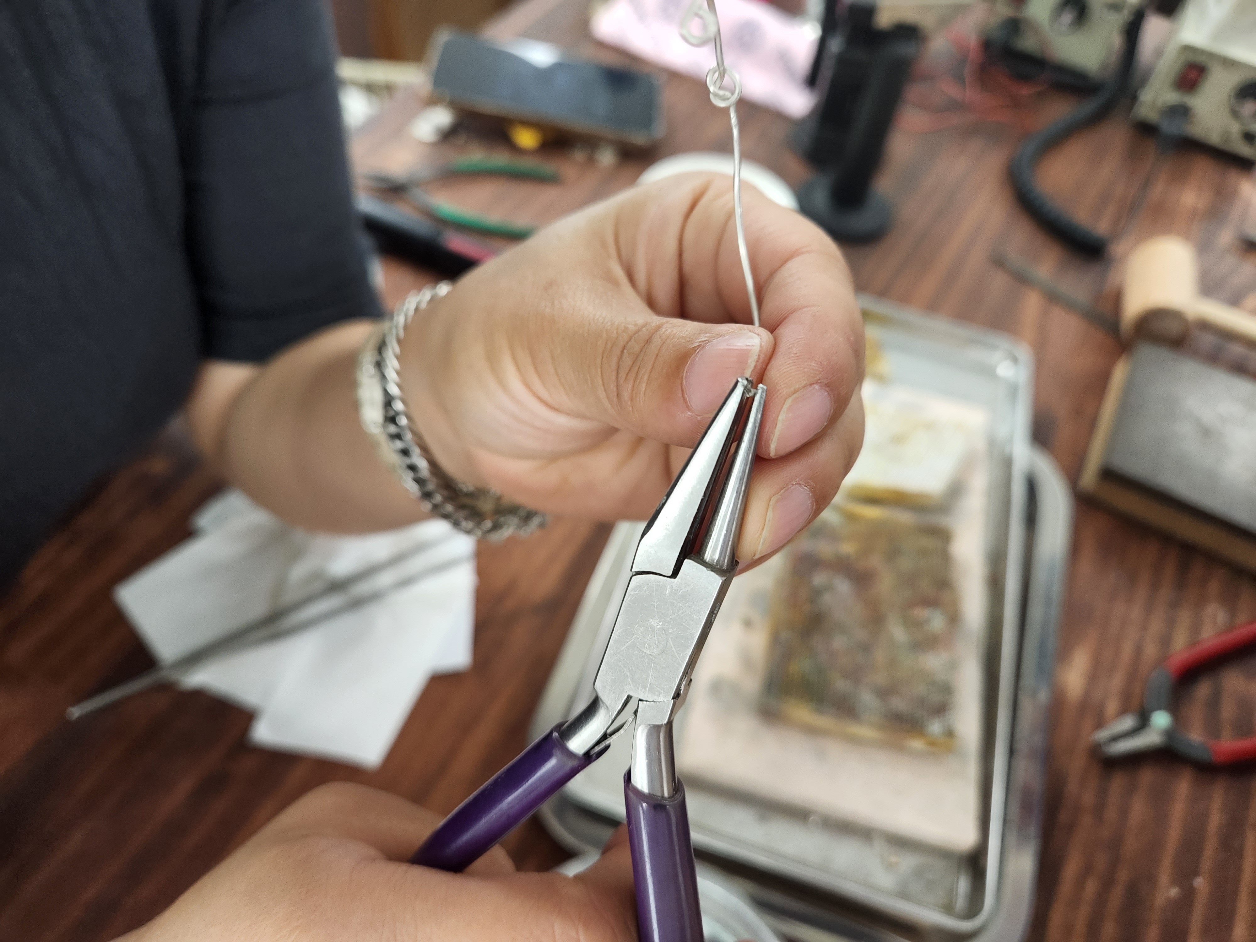 핀셋으로 작은 은을 집고 연결 부위에 땜을 하는데 손이 어찌나 떨리던지,