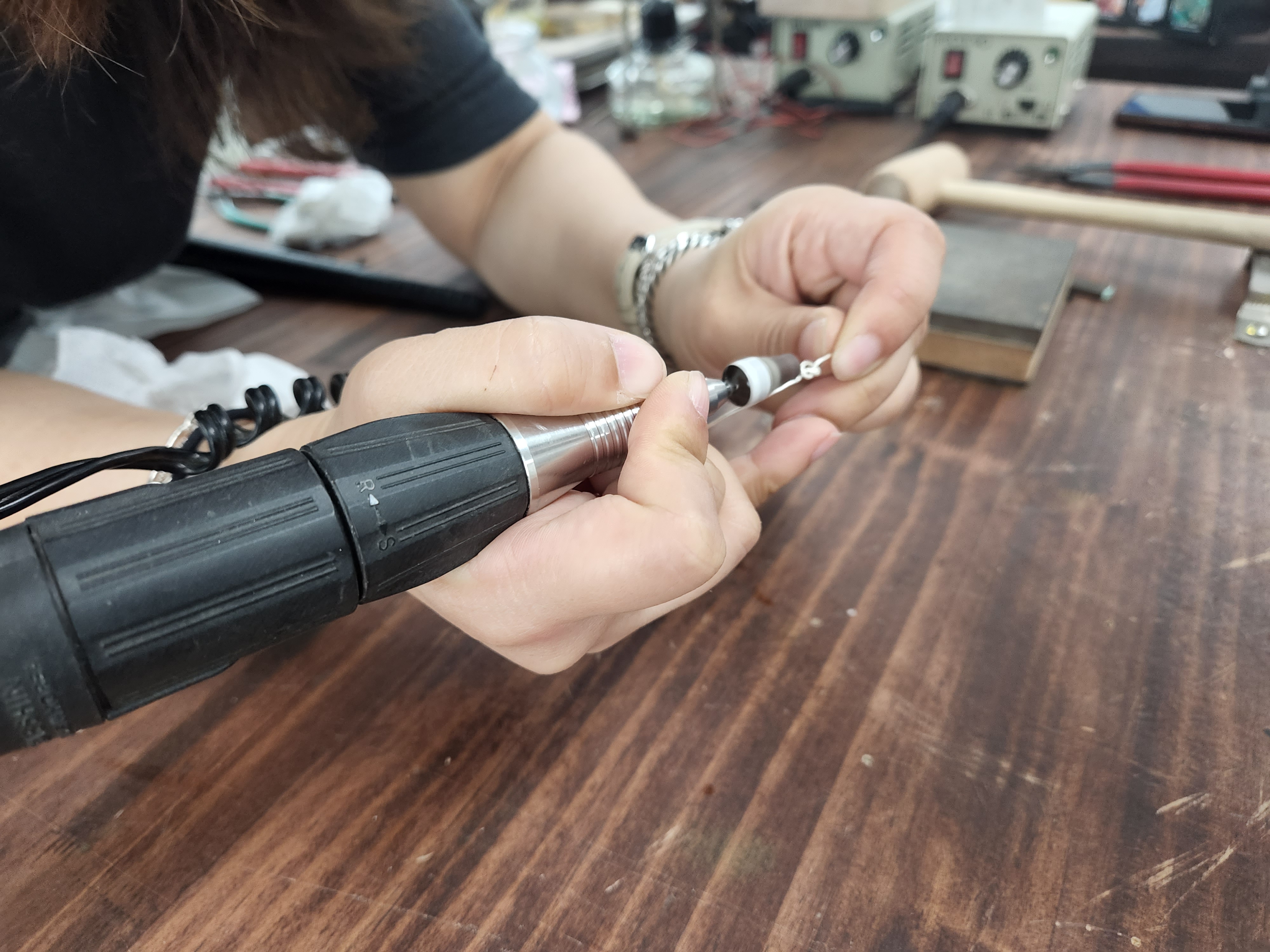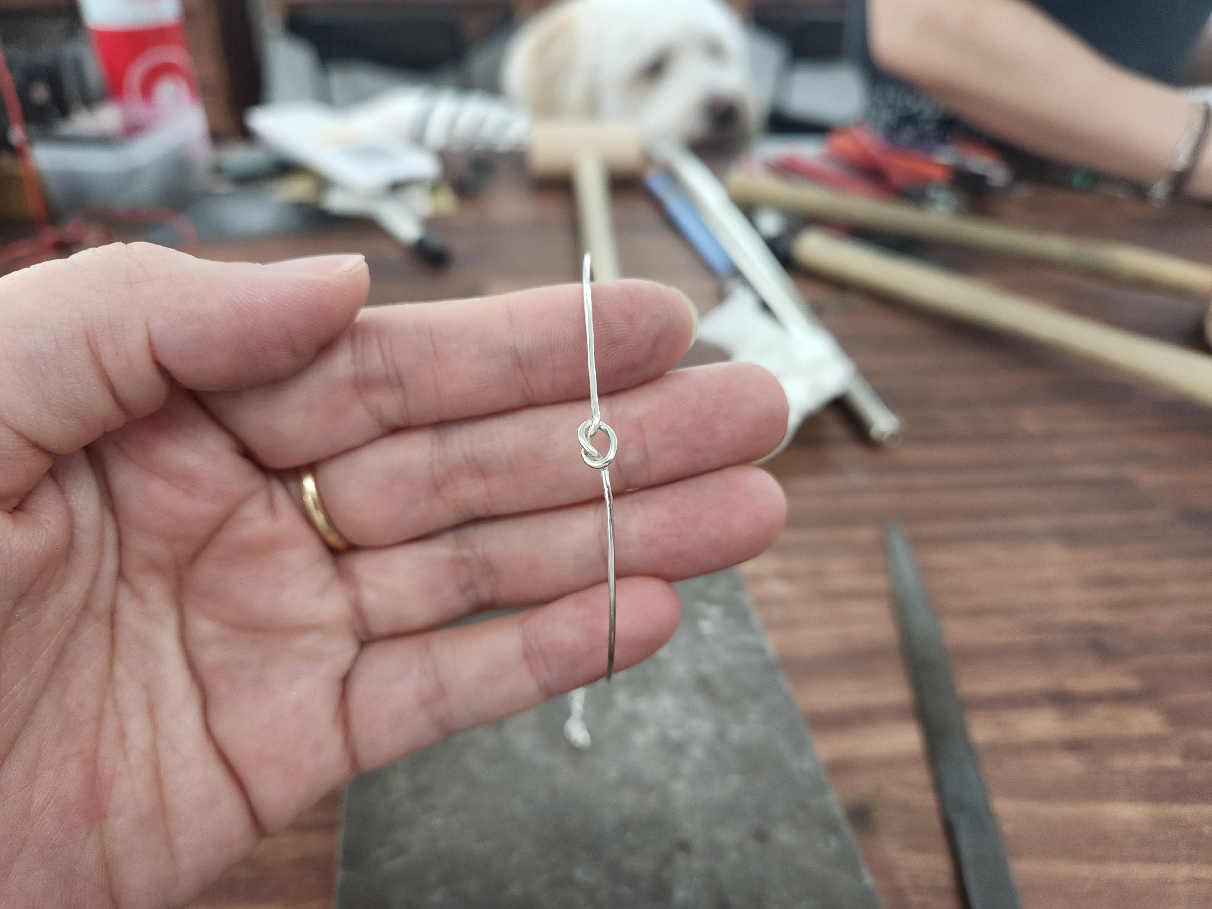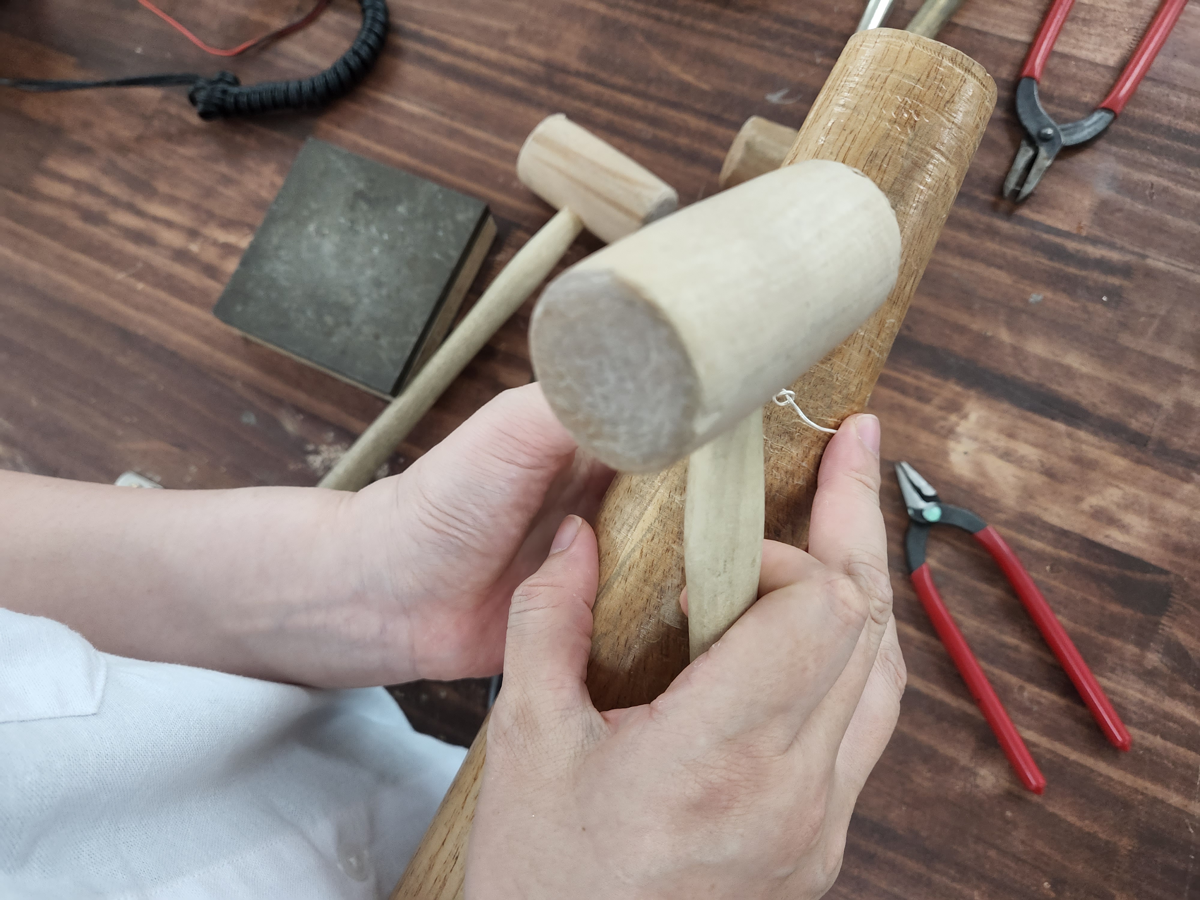 그 다음 팔찌 모양을 만들기 위해 두드리는 작업을해요.