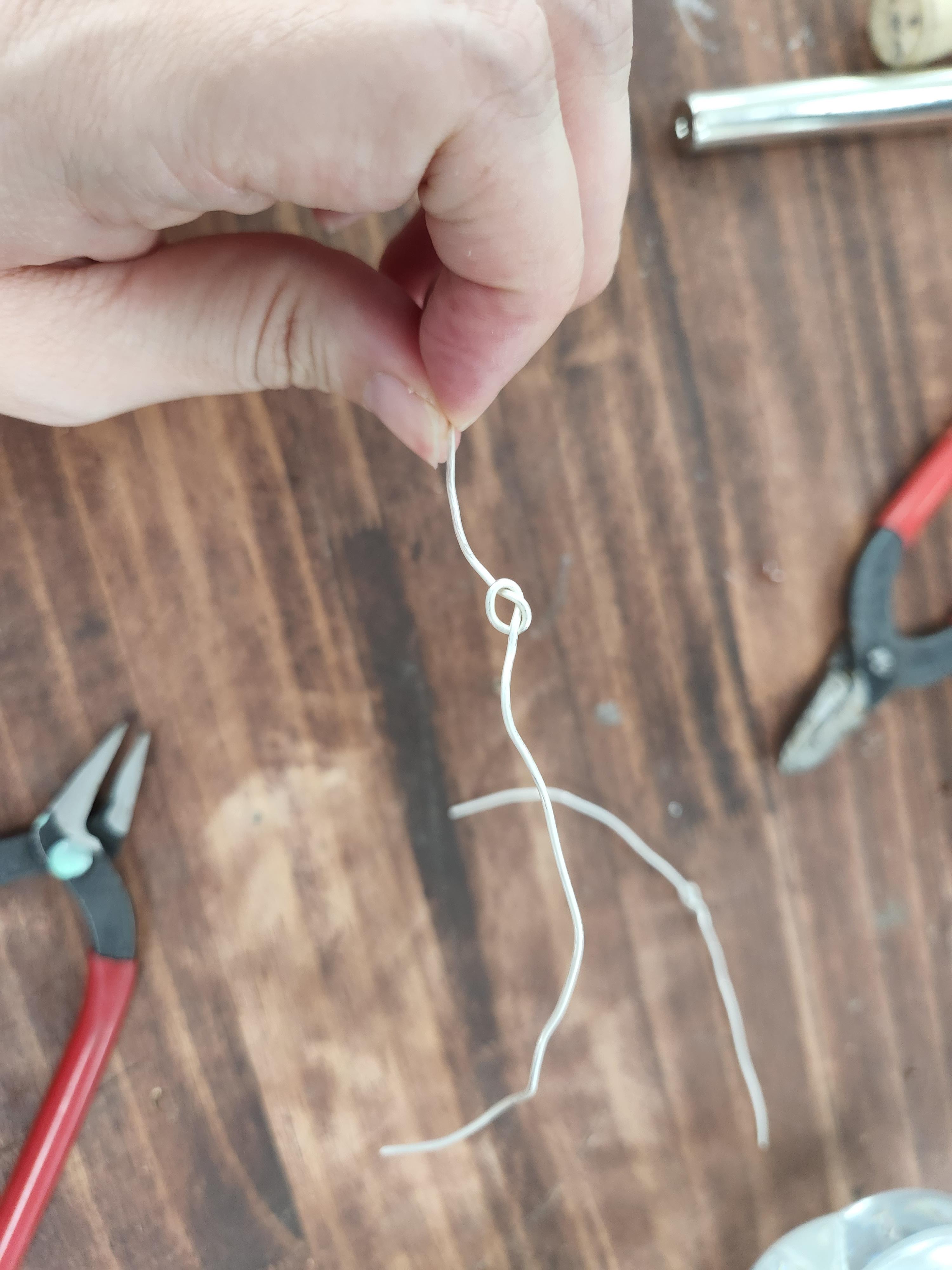팔목 사이즈 만큼 은을 자른 은을 정가운데 부분을 한뻔 꼬아줘요.