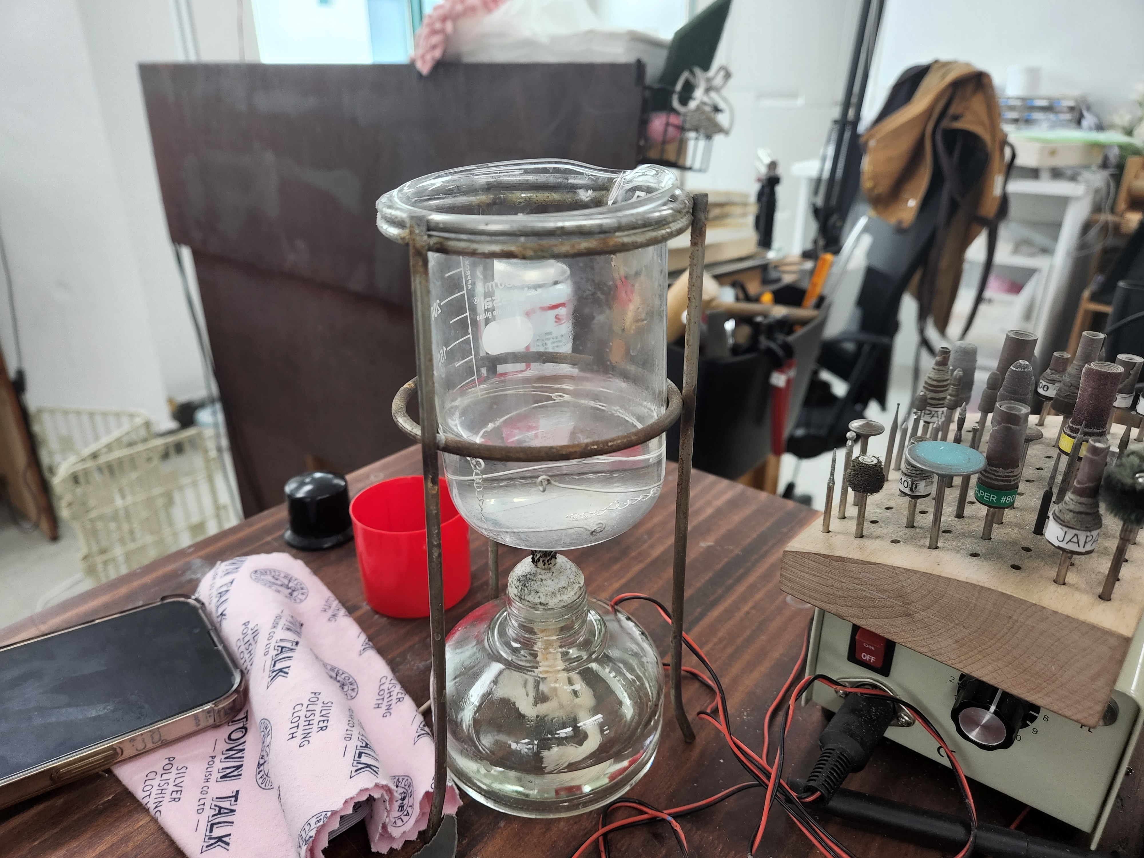 열을 가한 은은 물에 넣고 식혀주고 작업을 시작해요.'