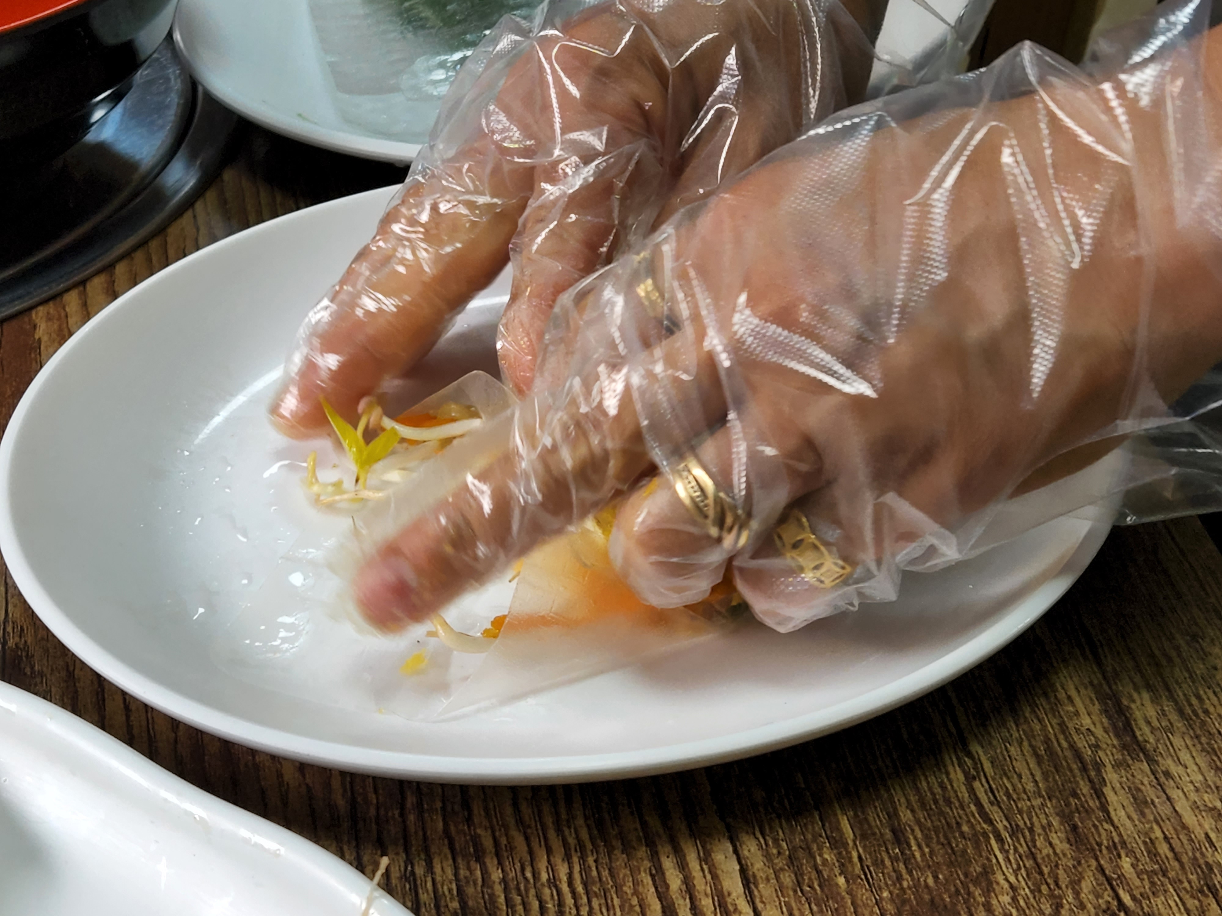 반세오가 만들어지면, 직원분이 오셔서 라이스페이퍼에 손소 직접 말아주십니다.