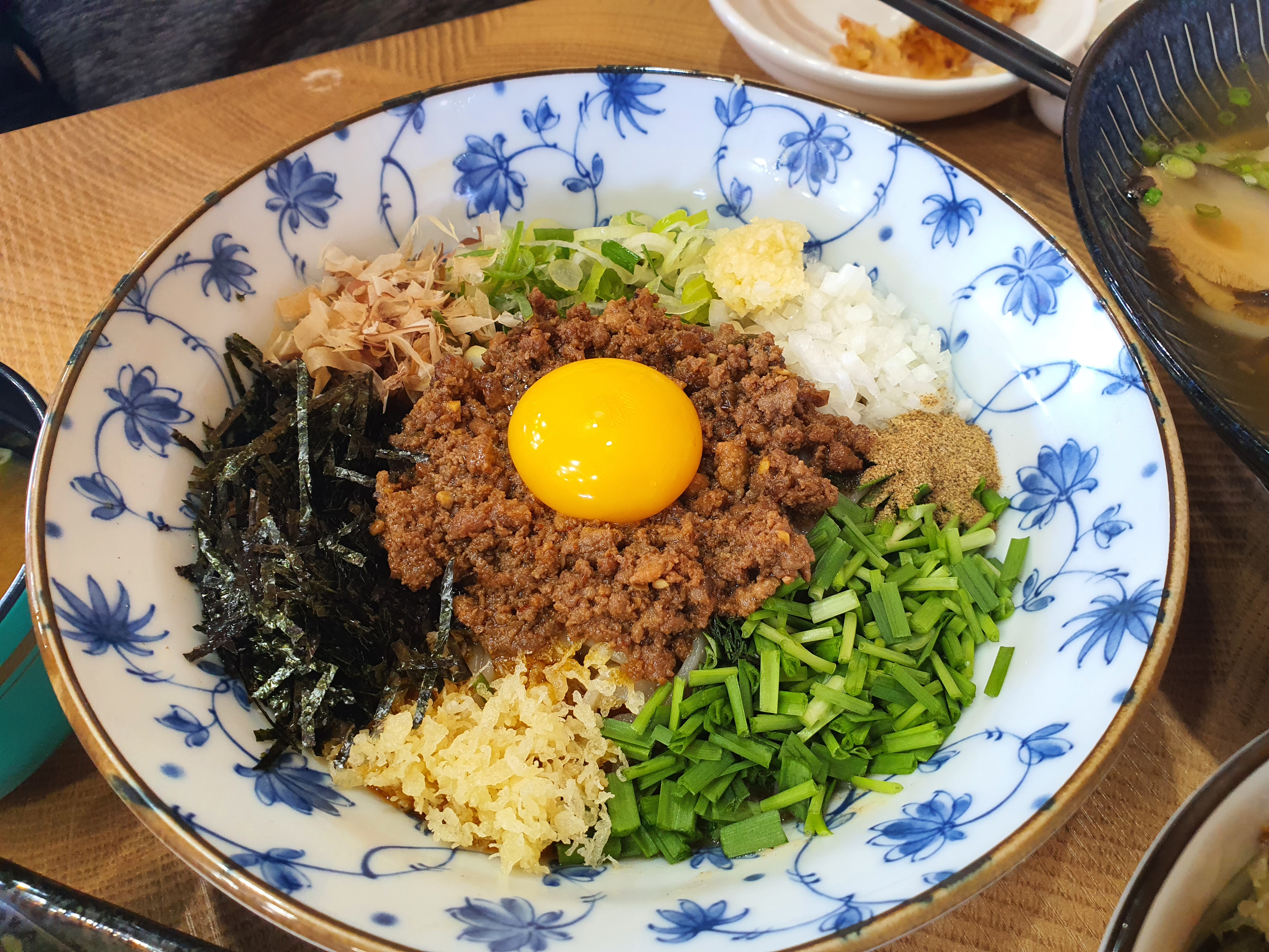 고기볶음이 굉장히 많이 들어가 있고 계란노른자를 터쳐 함께 비며먹으면 너무나 맛있어요.