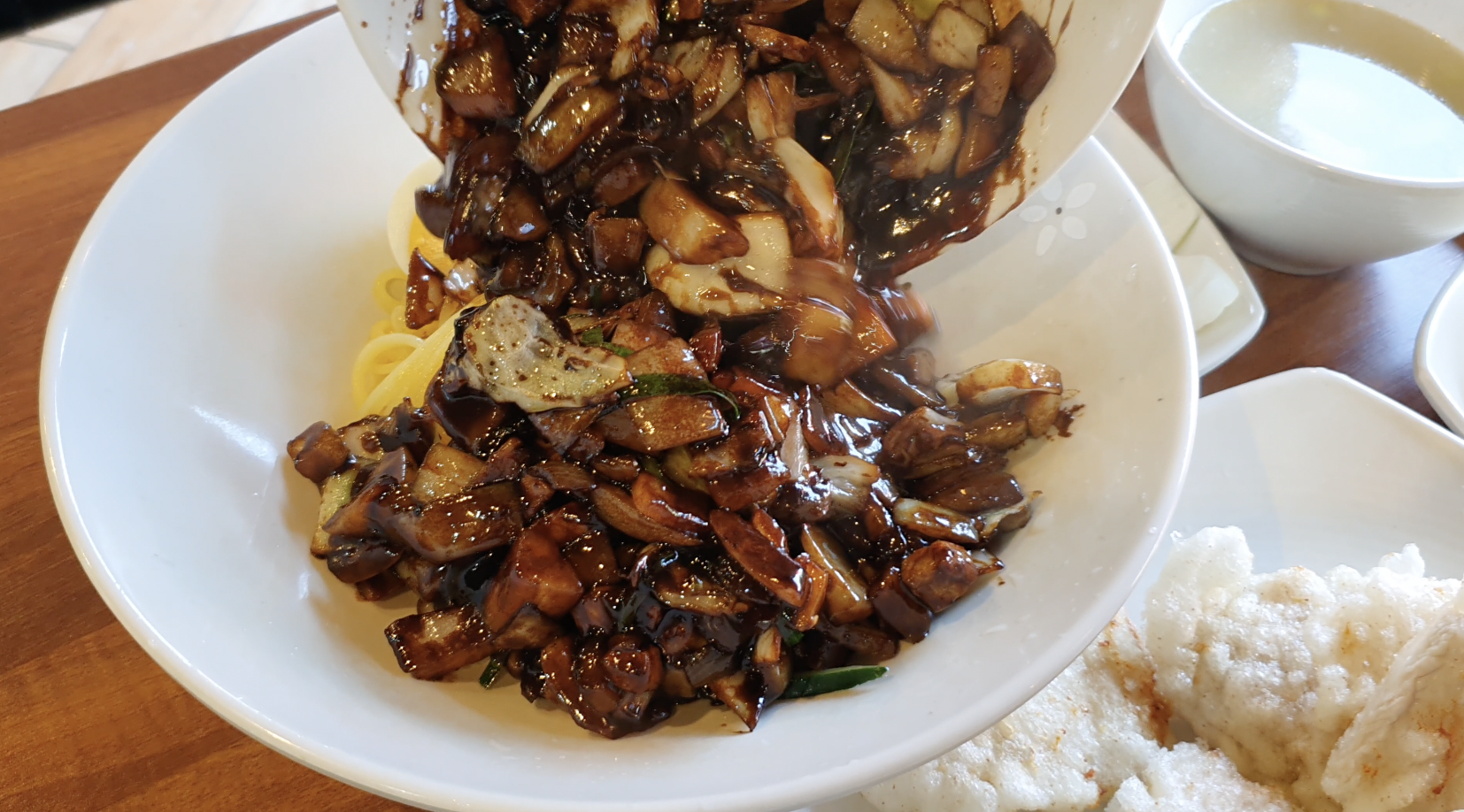 야채도 많고, 통통한 새우도 좋고, 짜장 소스까지 함께 나와서 맛있게 먹을 수 있었어요.