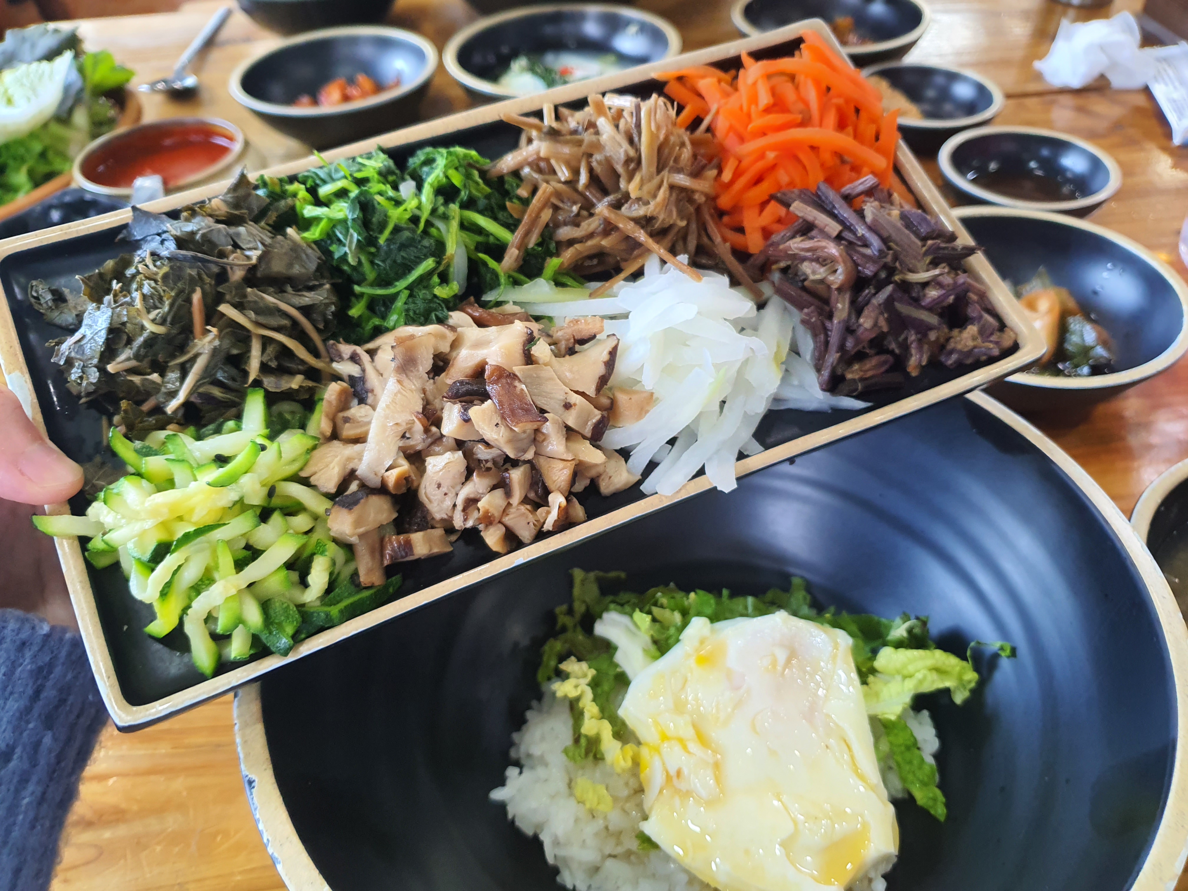 (산채비빔밥+고등어구이+8가지나물+각종쌈+계란후라이+국+뽀그리된장+기본반찬)
