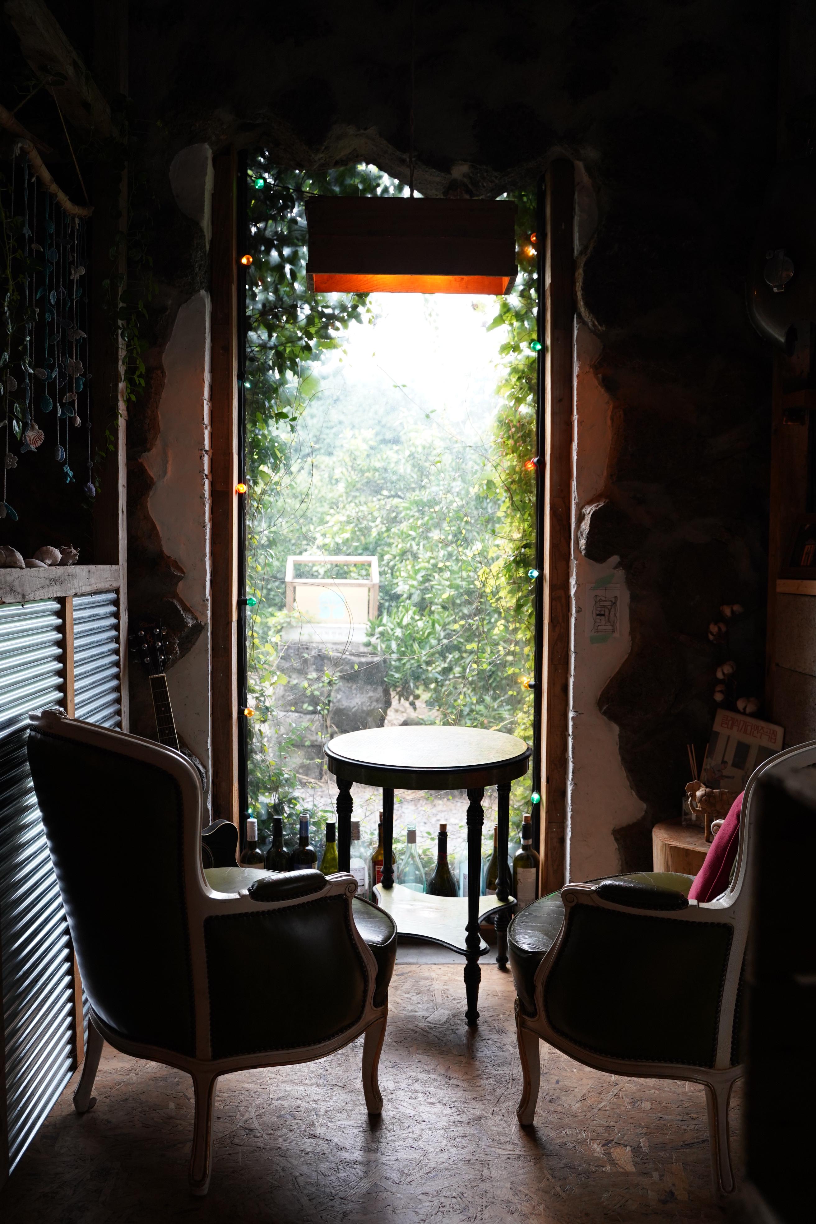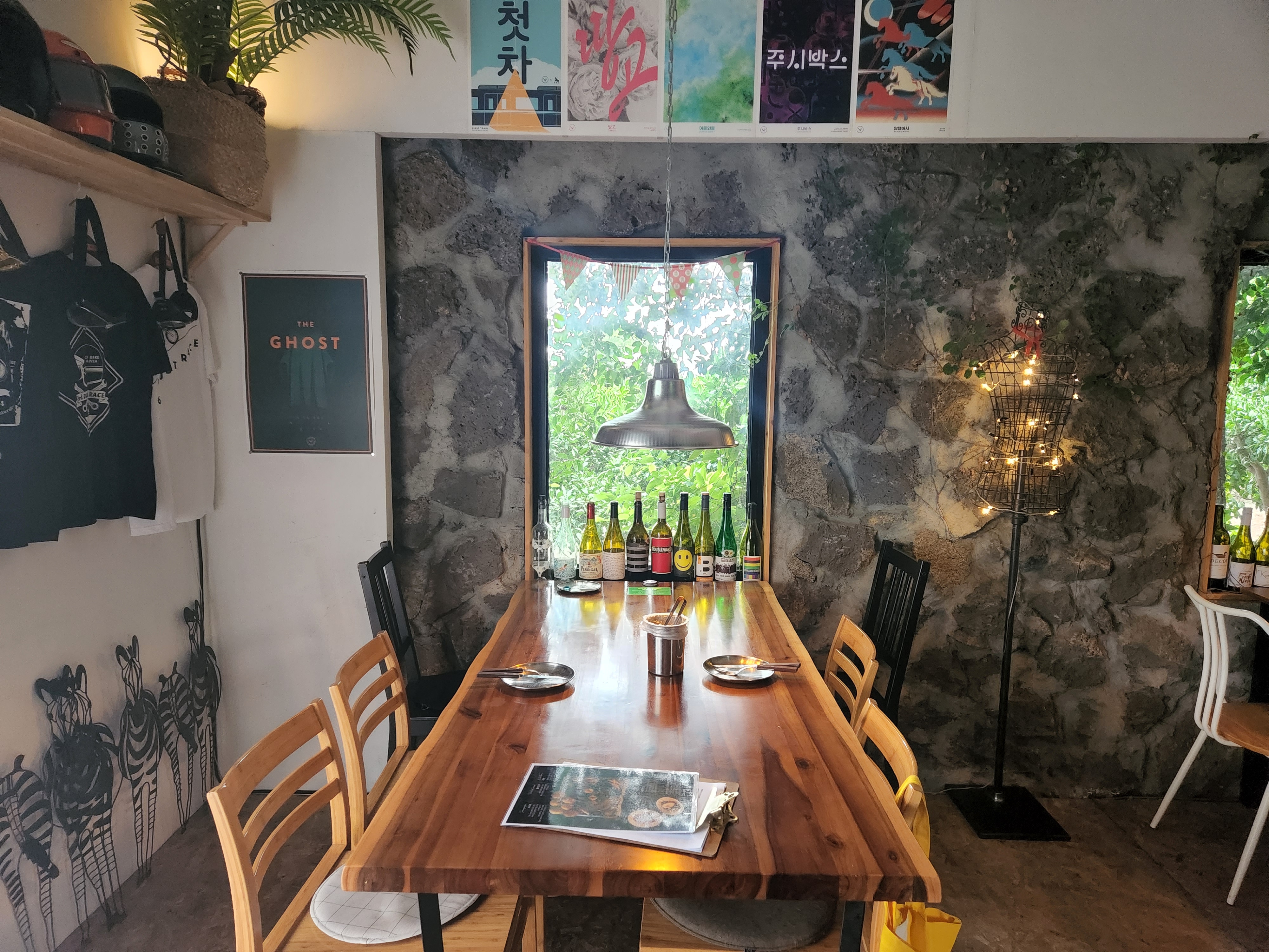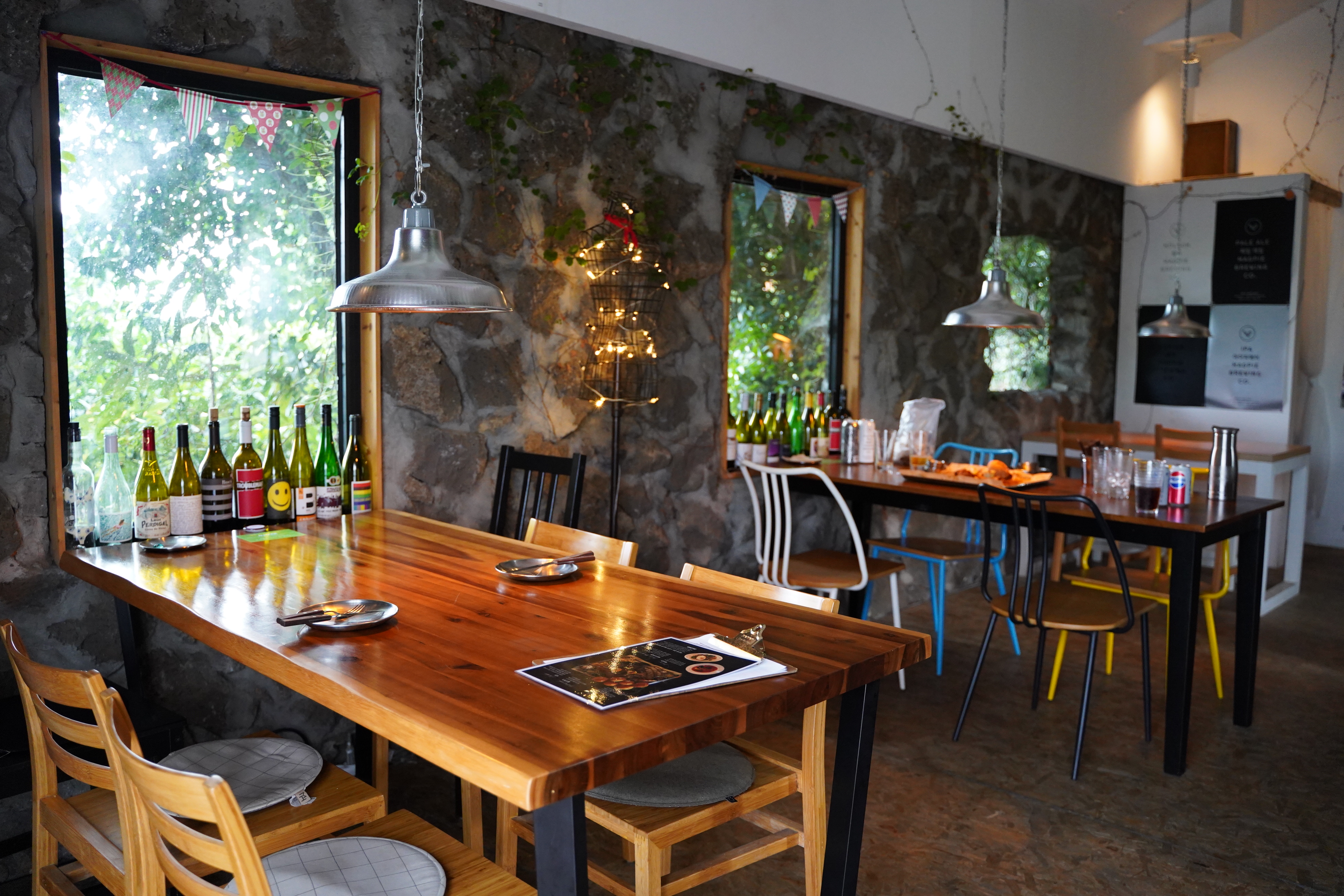 돌담 인테리어가 굉장히 제주스럽고 자연과 매우 가까운 느낌입니다.