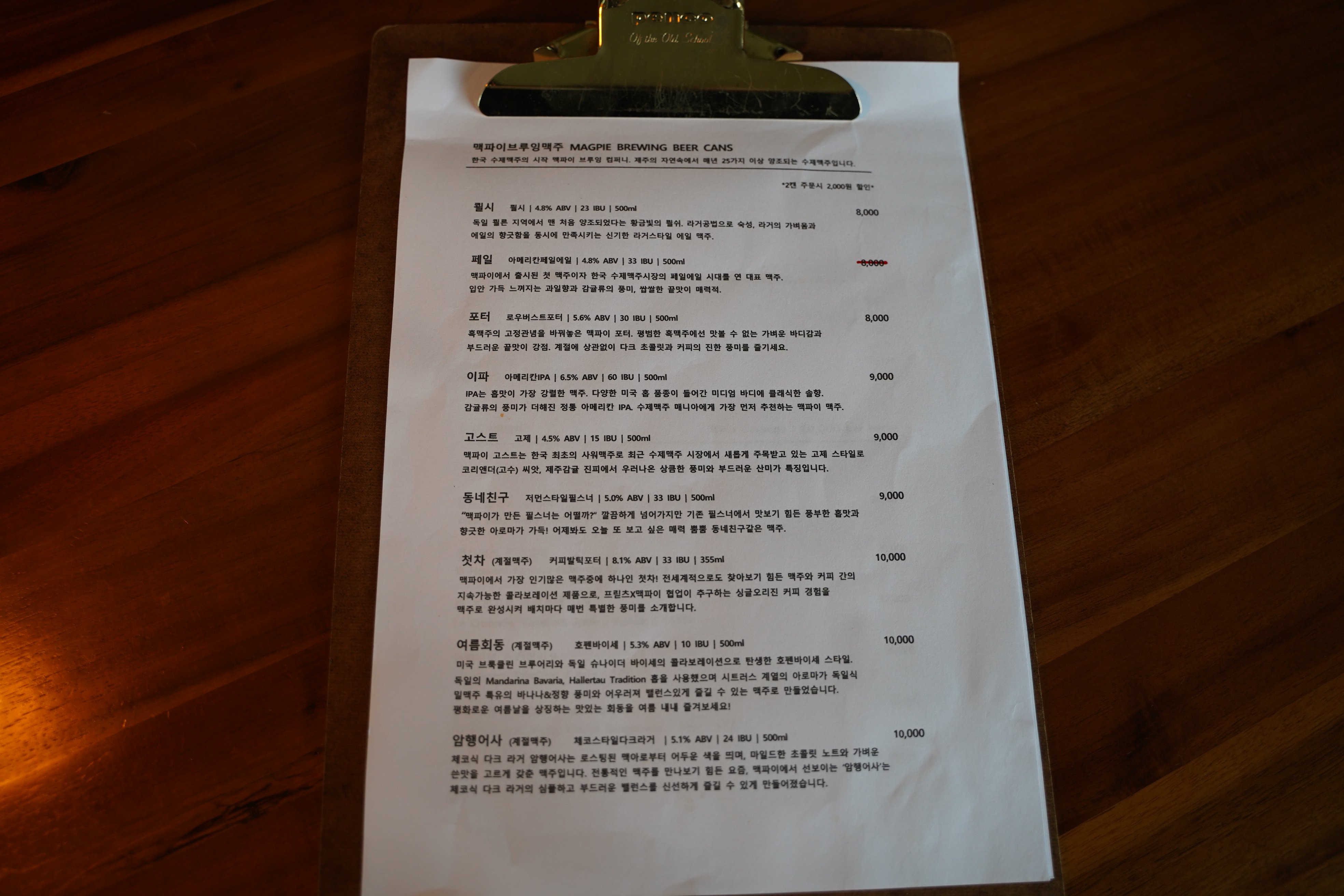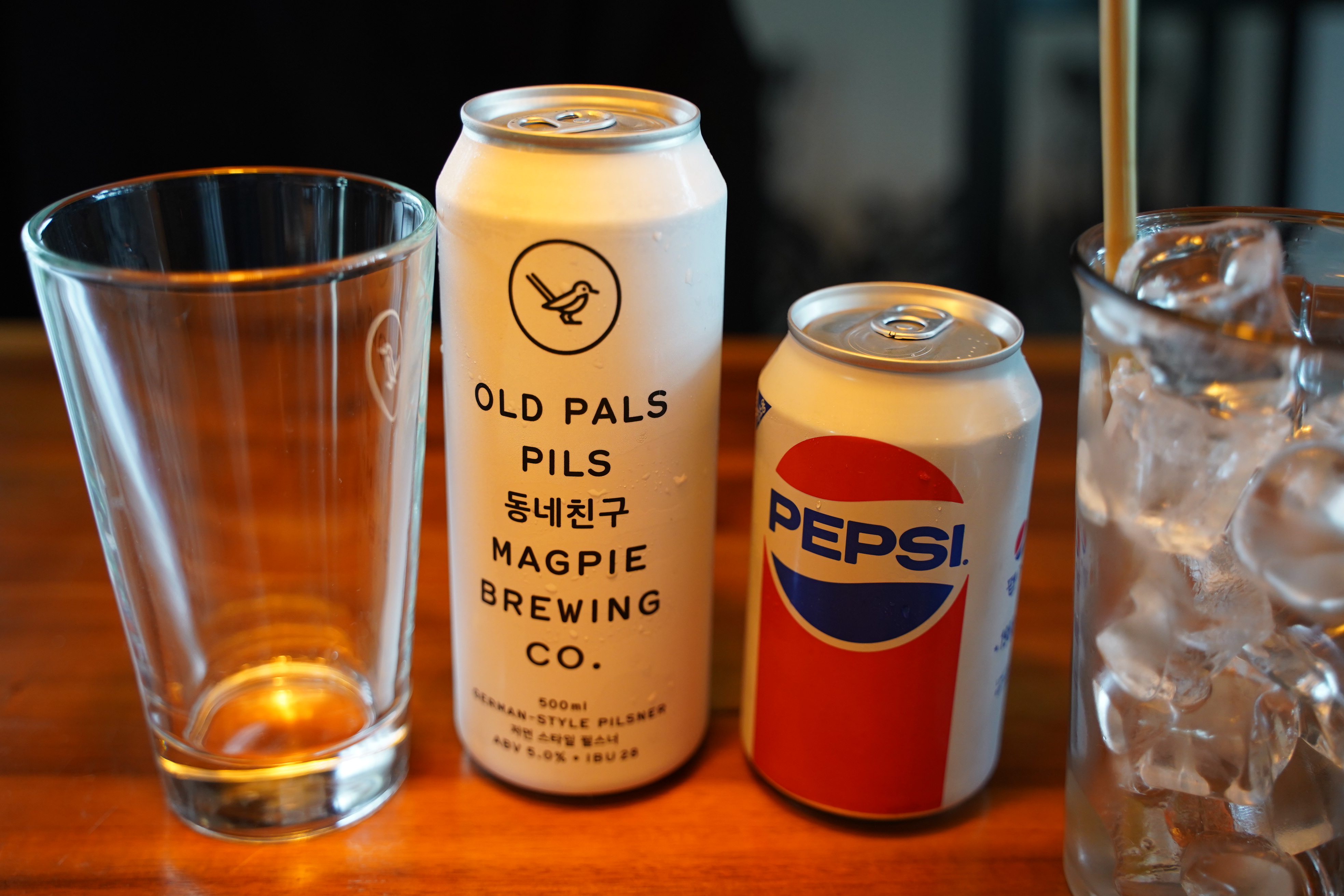 저는 친구와 함께 맥파이 동네친구 맥주와, 콜라를 주문했어요.