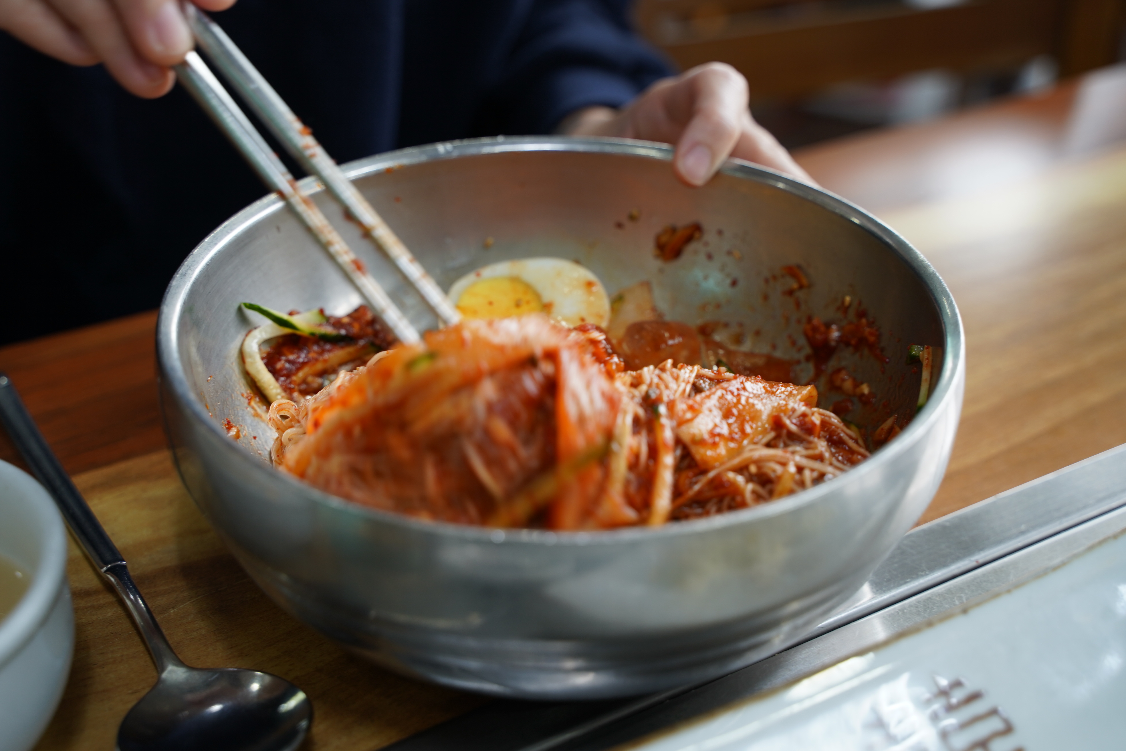 양도 많고 밀면도 쫄깃하고 오이와 계란지단이 올라간 고명도 매우 정성스러운 곳이에요.