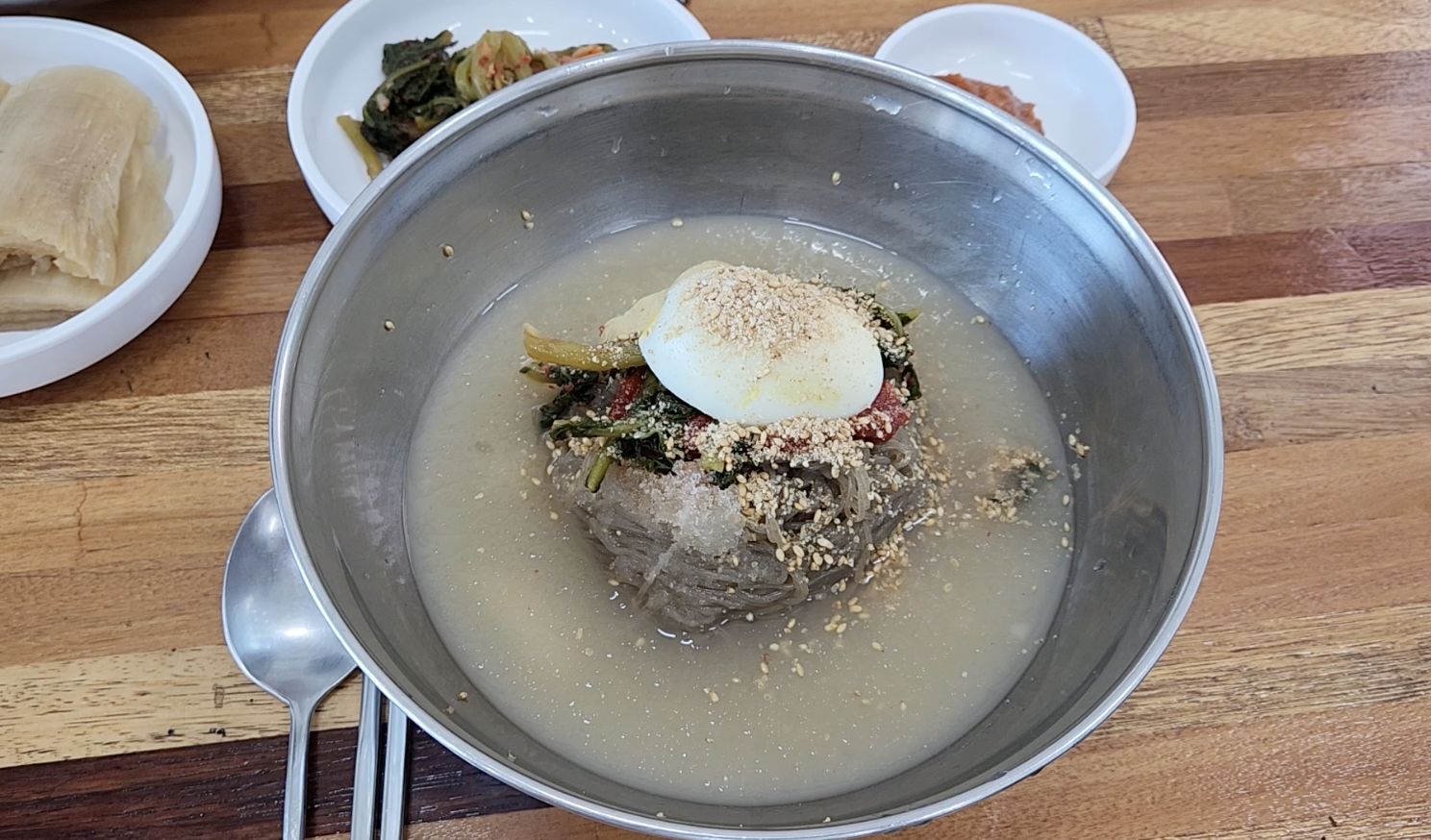 반찬은 백김치와 열무김치가 나오는데 김치가 정말 맛있었어요.