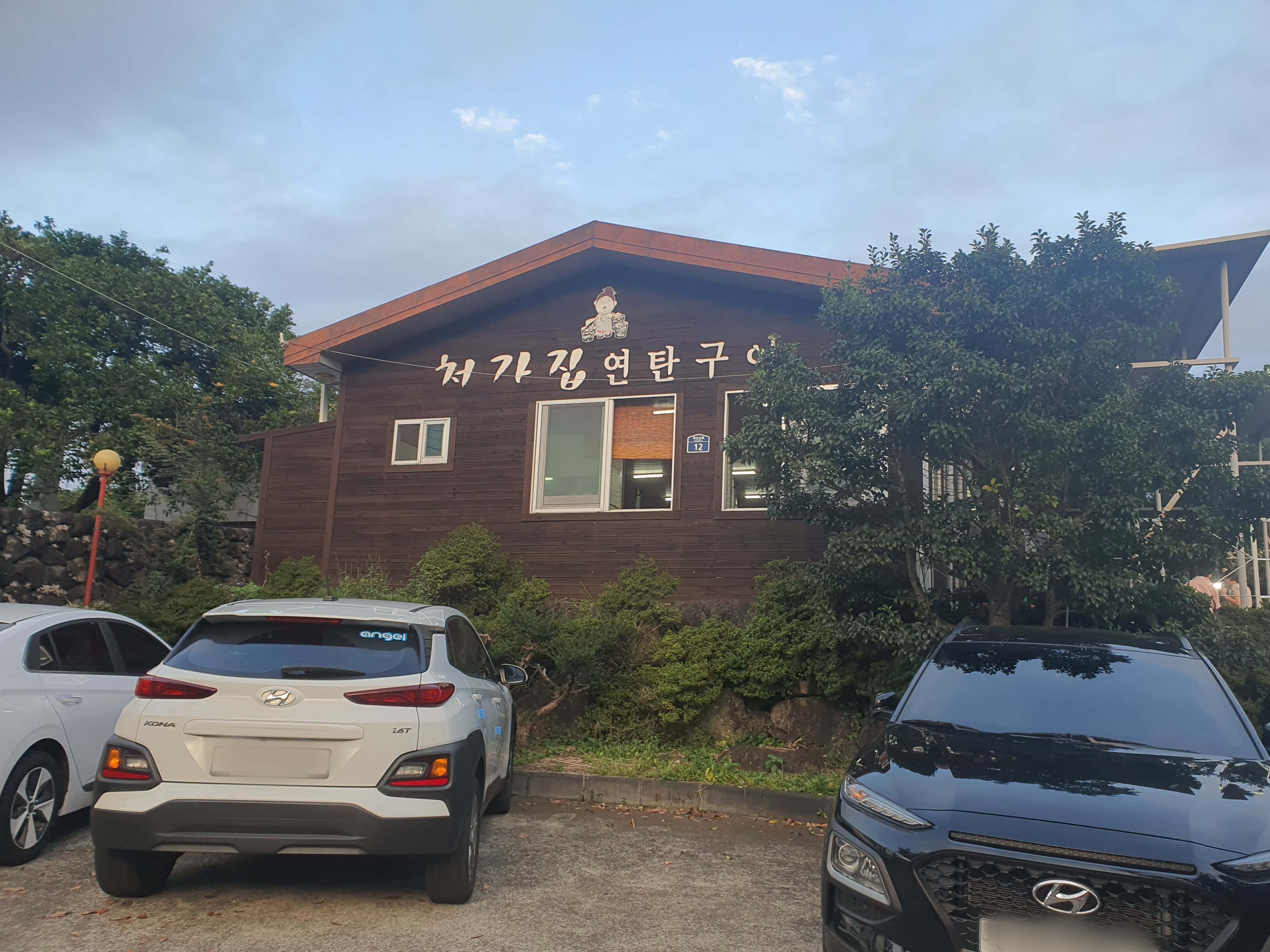 처가집 연탄구이집 바로 앞에 몇개의 차를 세울 수 있는 주차 공간이 있어요.