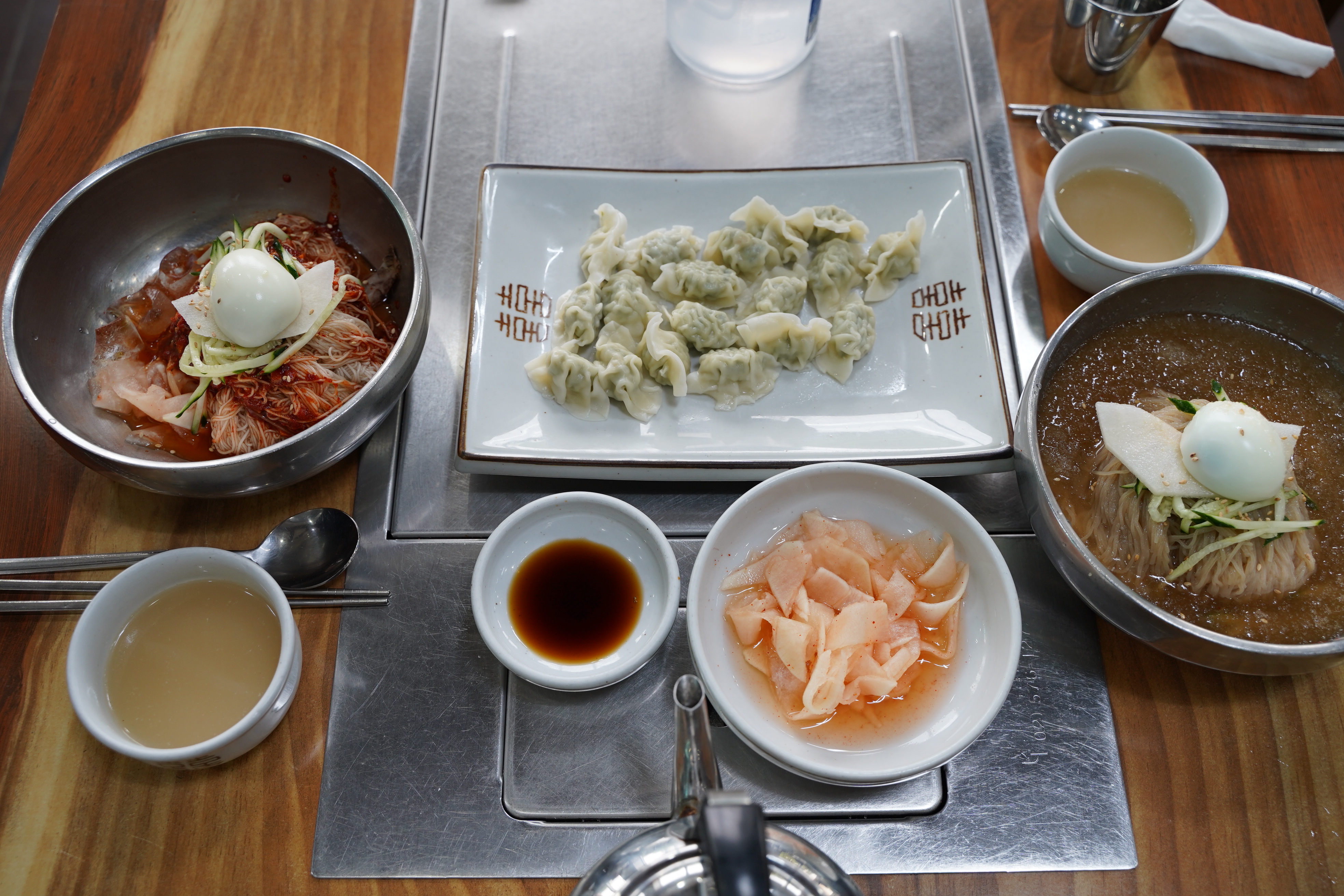 비빔냉면과, 물냉면, 물만두를 주문했어요.