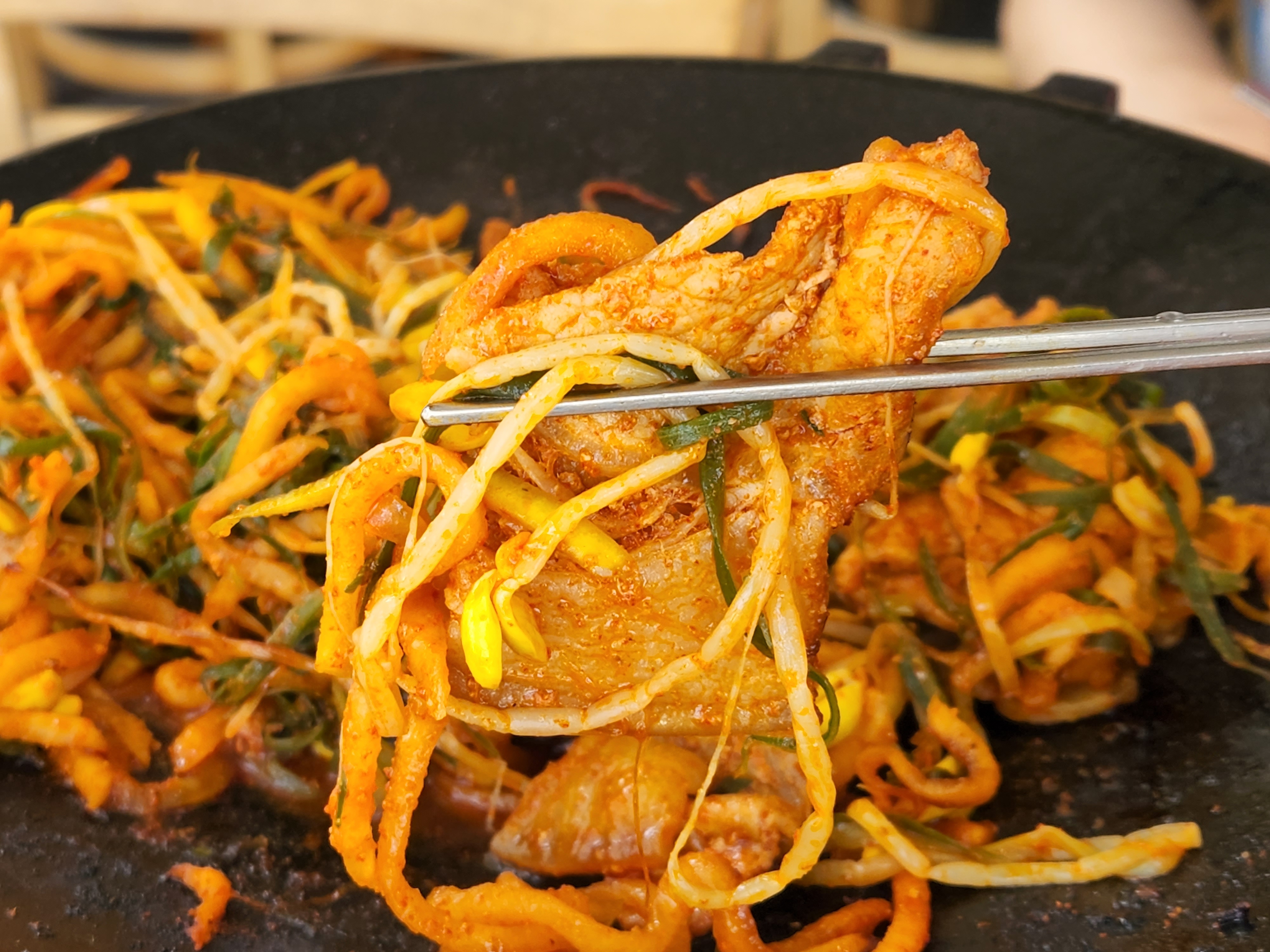 파채나 콩나물을 조금씩 먹어도 되지만 고기와 함께 볶아먹는 것이 가장 맛있어요.