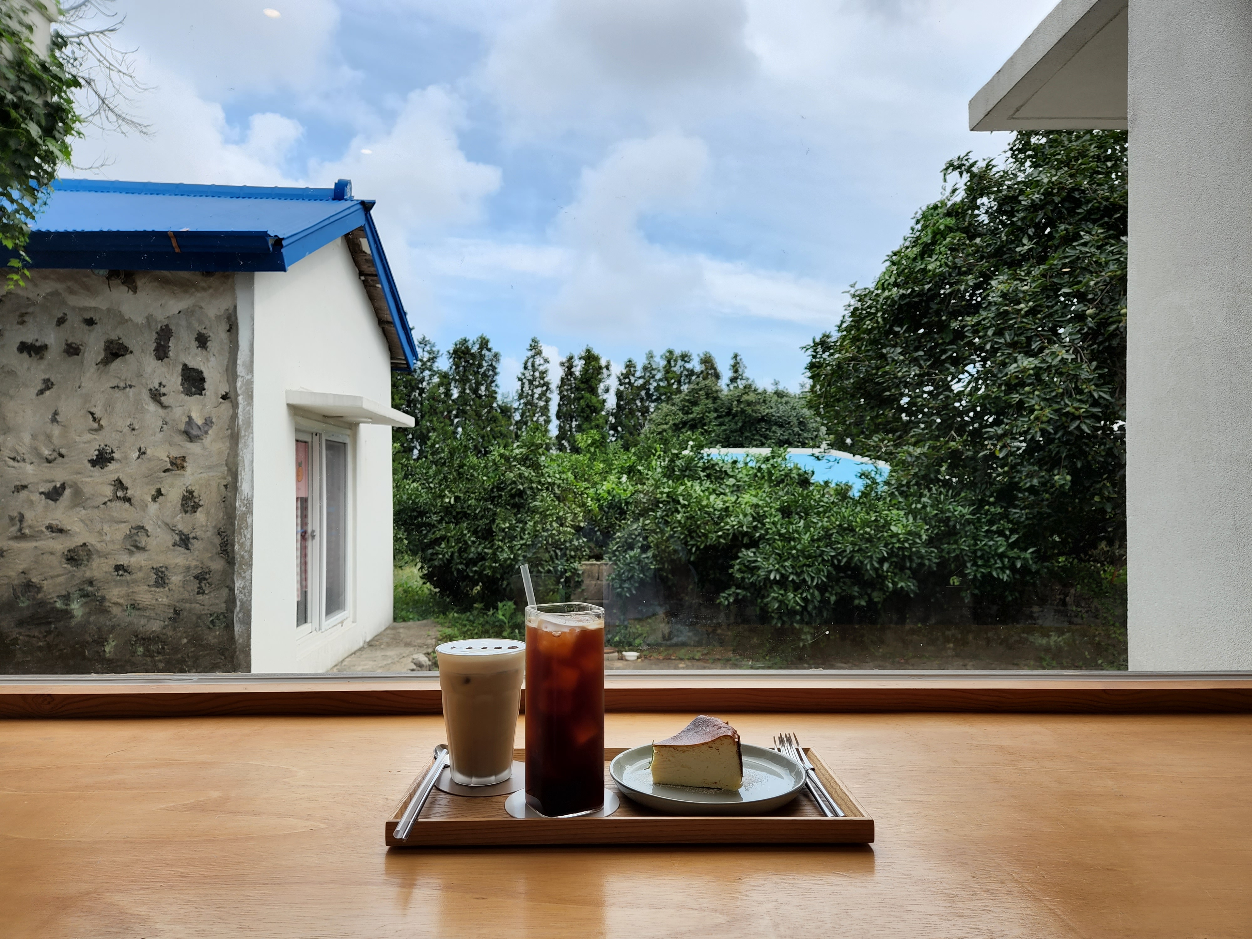 밖에 감귤 풍경과 예쁜 하늘까지 너무나 잔잔하고 아름다운 서귀포 카페 추천해요.
