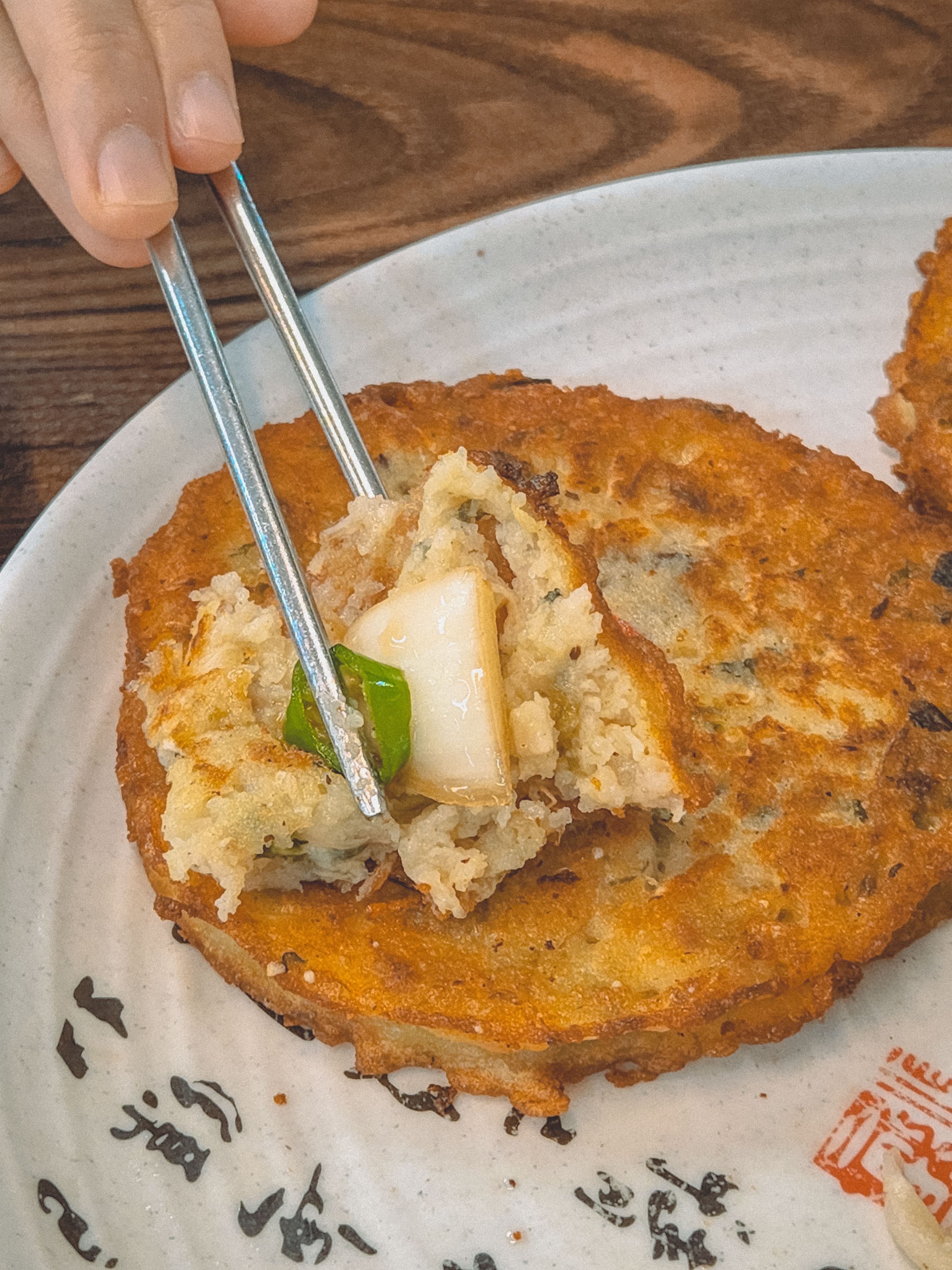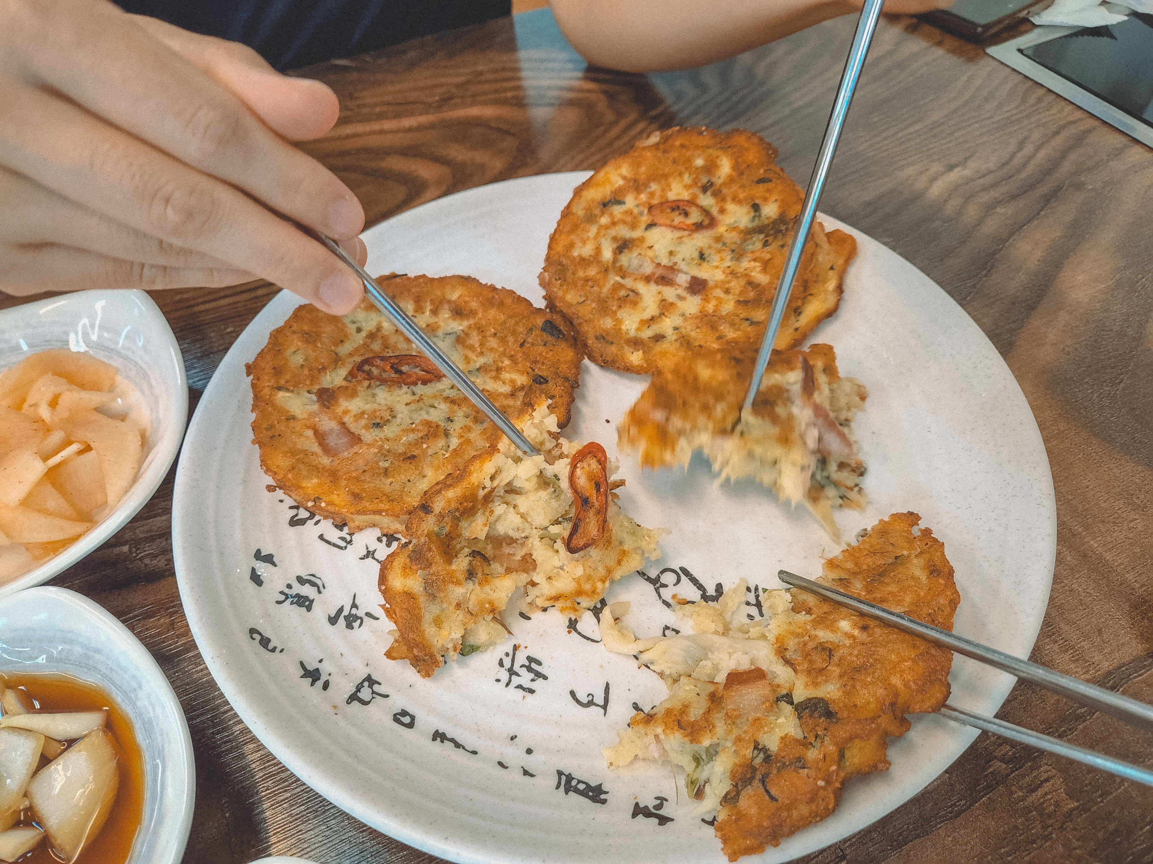 녹두, 양파, 베이컨 등등 다양한 재료가 들어간 녹두빈대떡은 굉장히 겉은바삭 속은 촉촉했어요.
