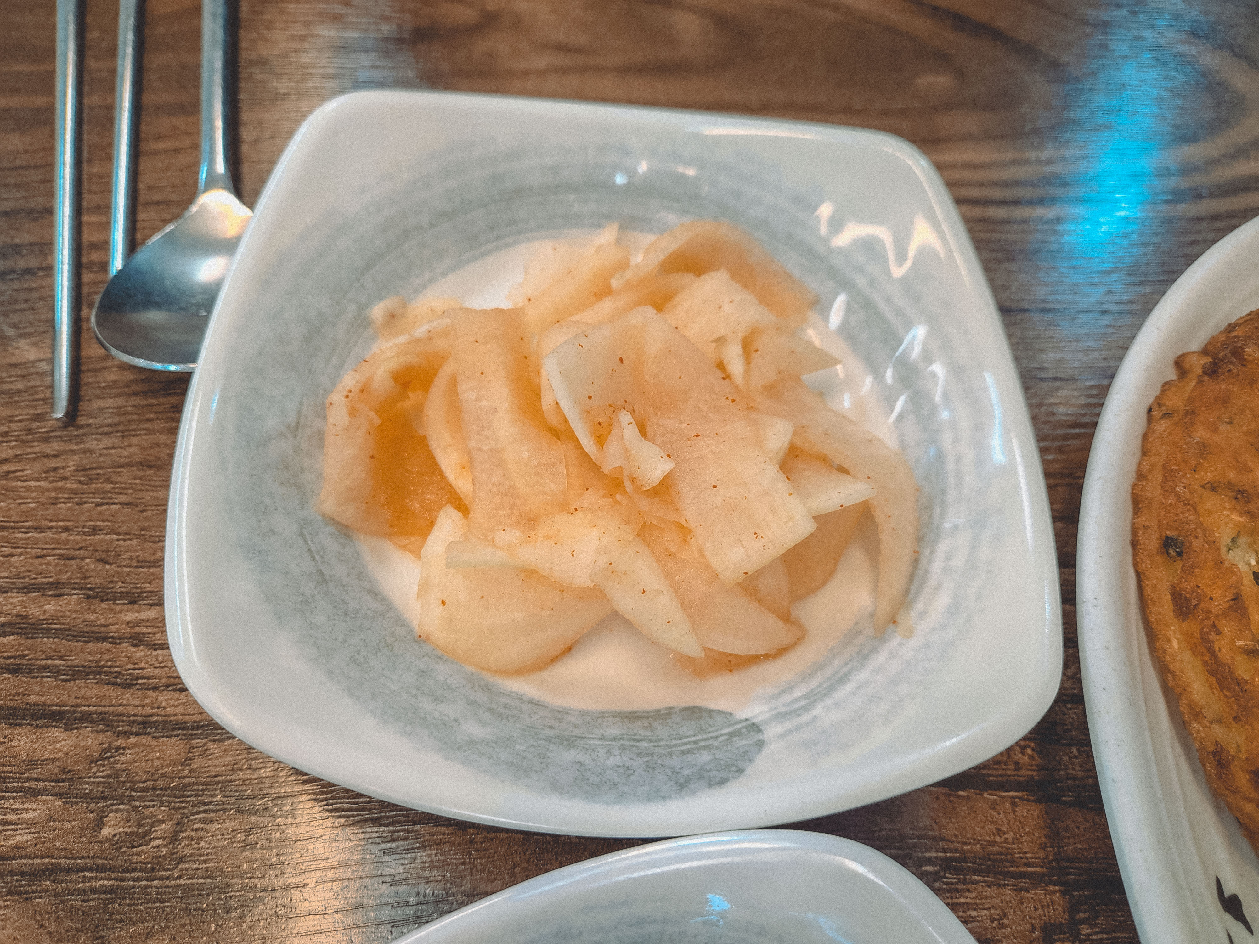 반찬은 많지 않고 무와 양파장아찌, 김치 정도입니다.