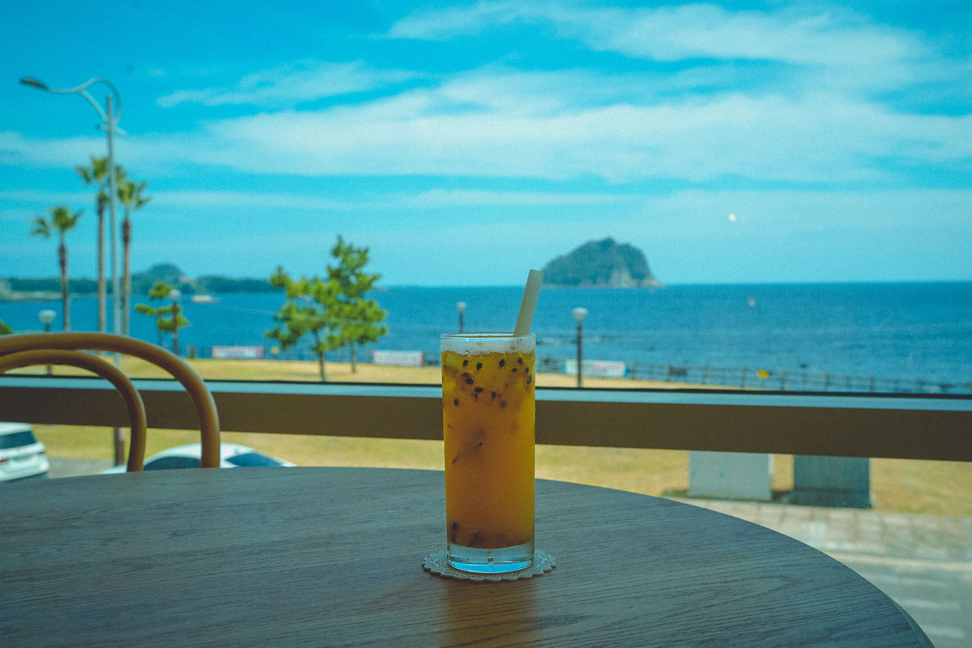 멀리 섶섬이 보이고 바로 앞에는 큰 건물이 없어 시야가 확 트여서 제주의 뷰와 아름다움을 구경하기 딱 좋아요.