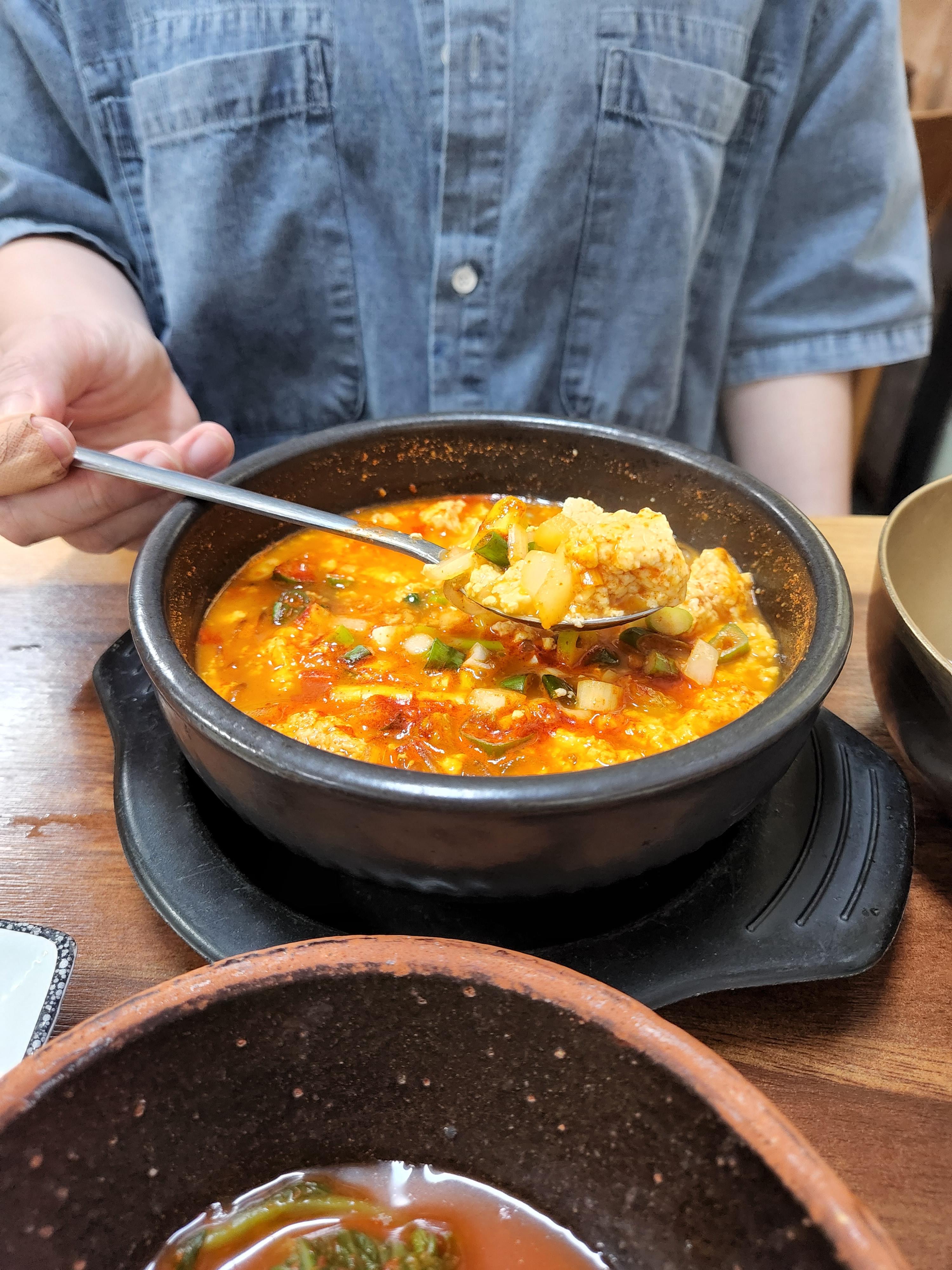 얼큰한 순두부를 주문했는데 정말 매운냄새가 팍 올라와요.