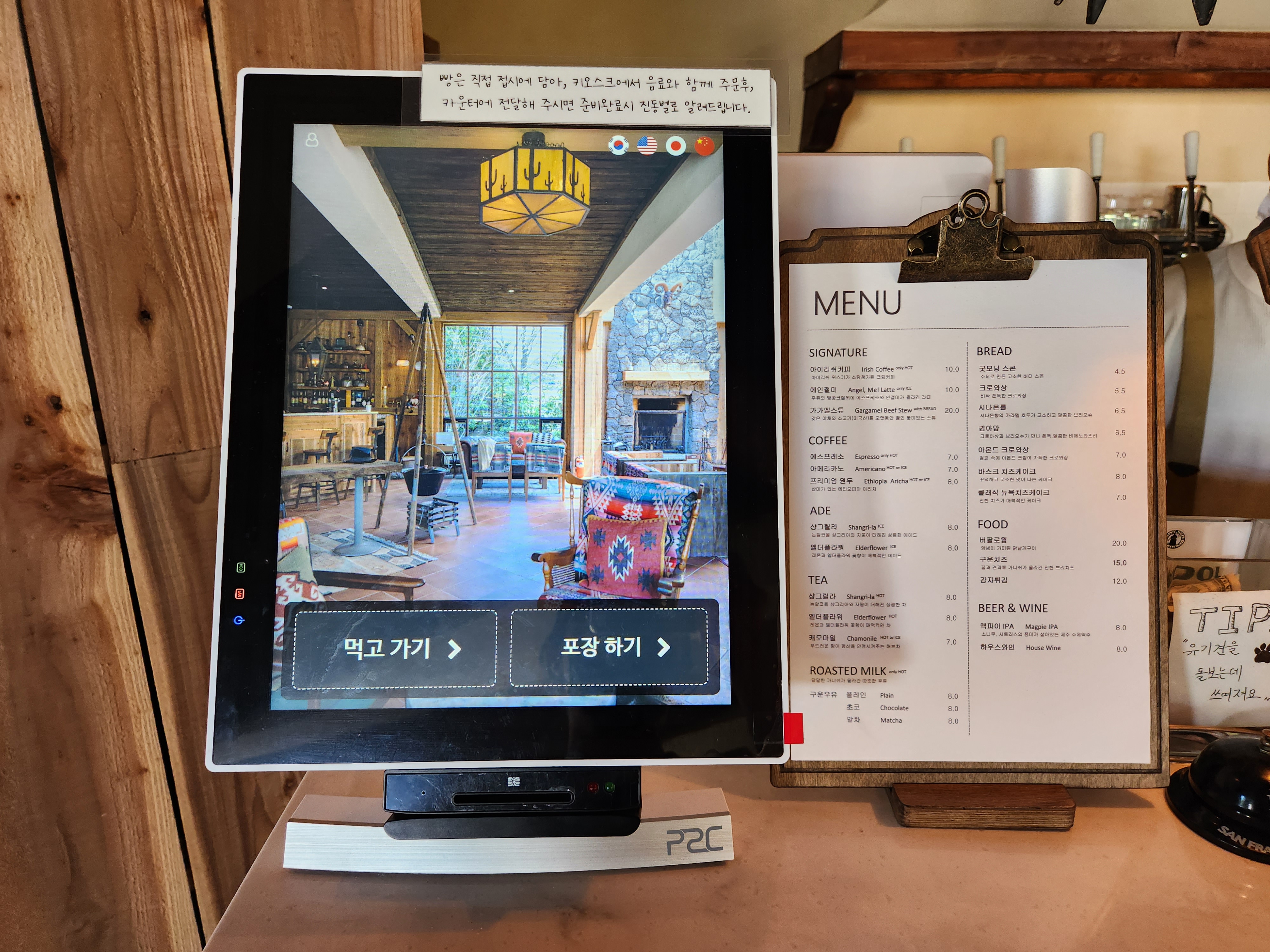 안으로 들어가니, 직원분이 있지만 주문은 무조건 키오스크로 주문을 해야돼요.