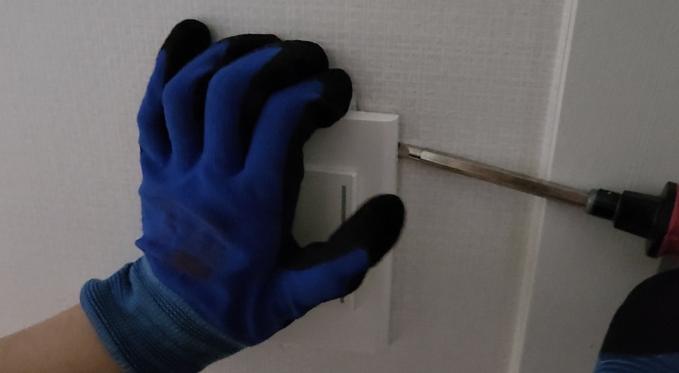 차단기를 내린 후, 일자 드라이버로 똑똑 스위치를 떼어내주세요.