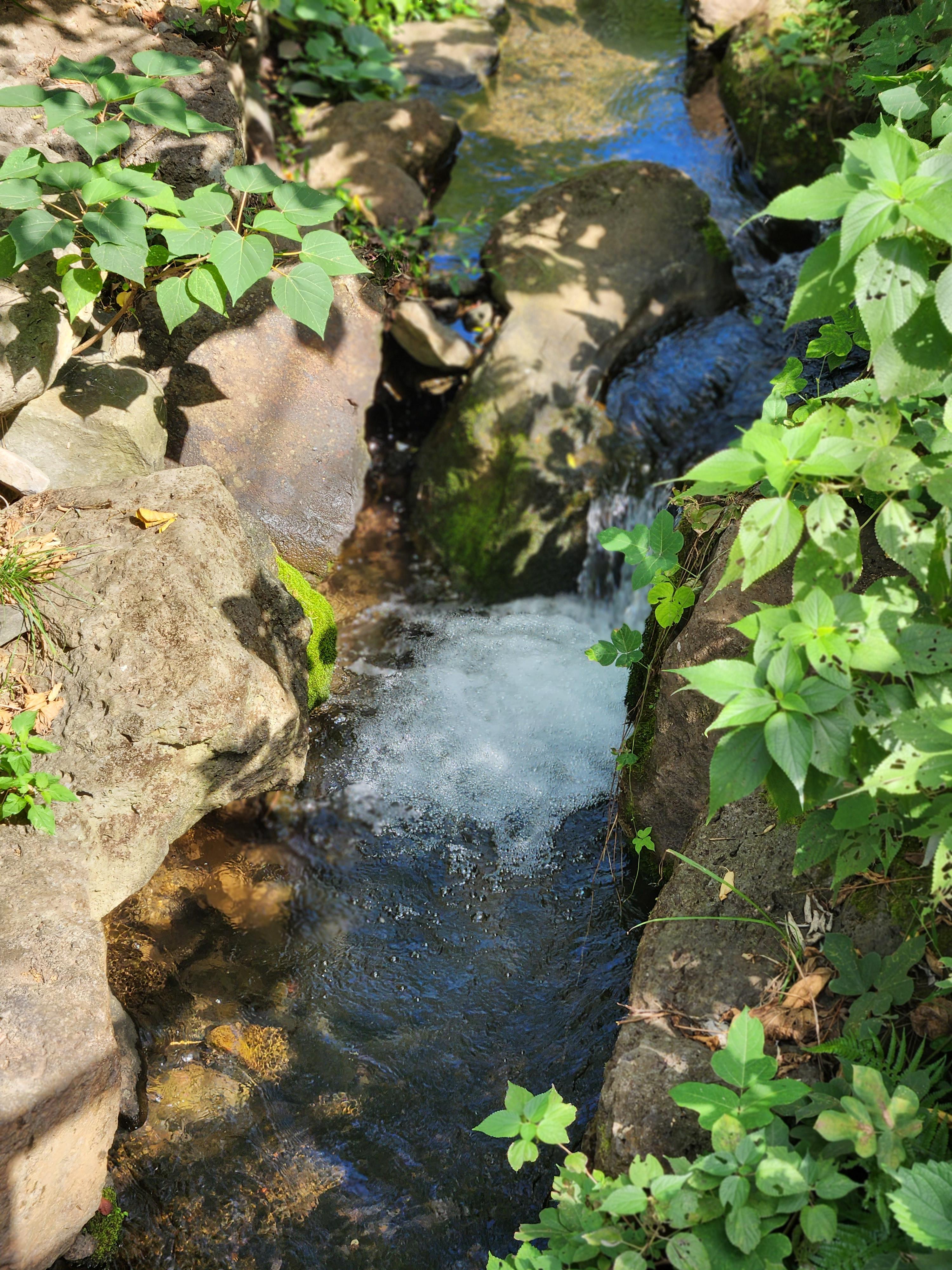 물이 이렇게 계속 흐르기 때문에, 가까이서 물 흐르는 소리를 정말 잘 들을 수 있어요.
