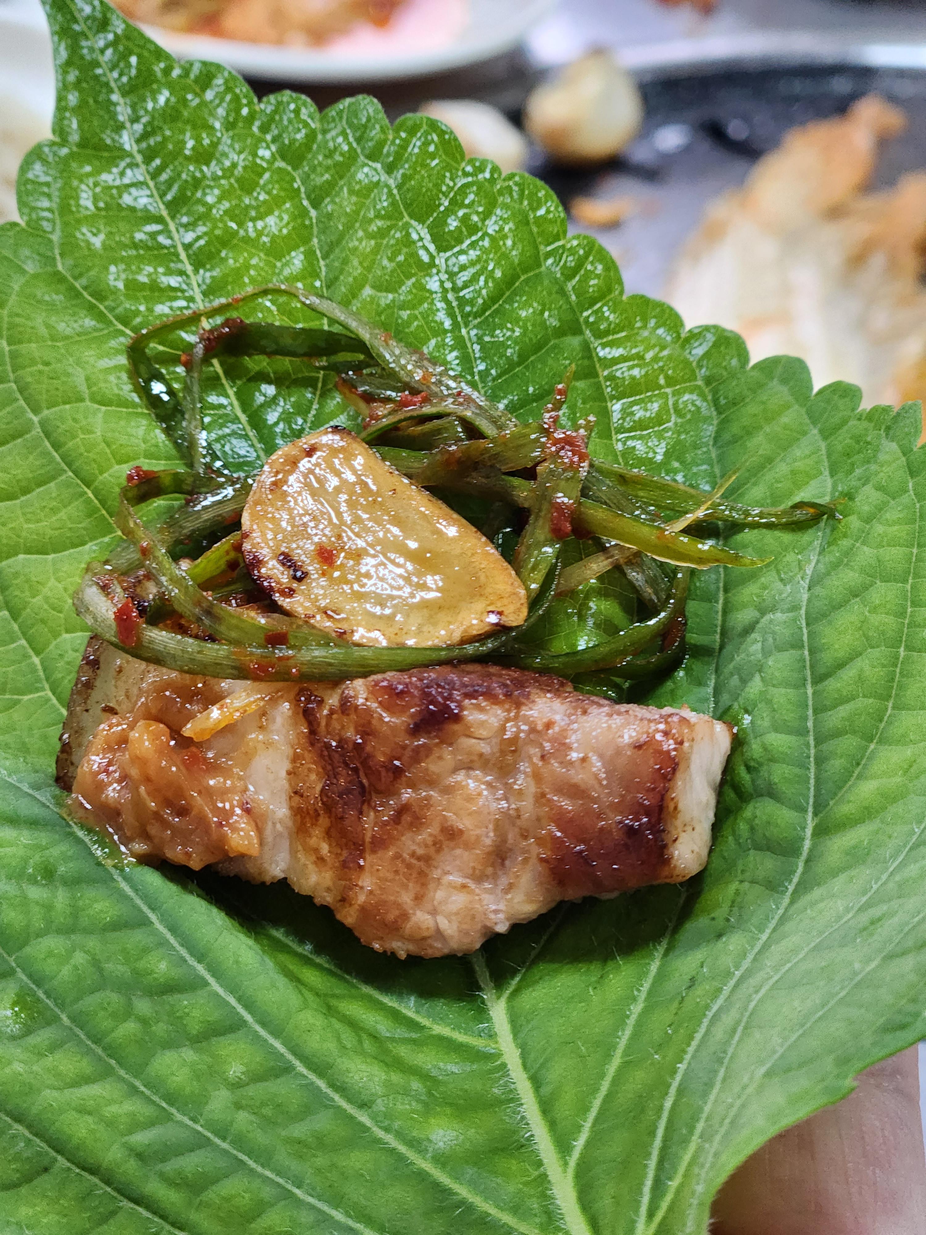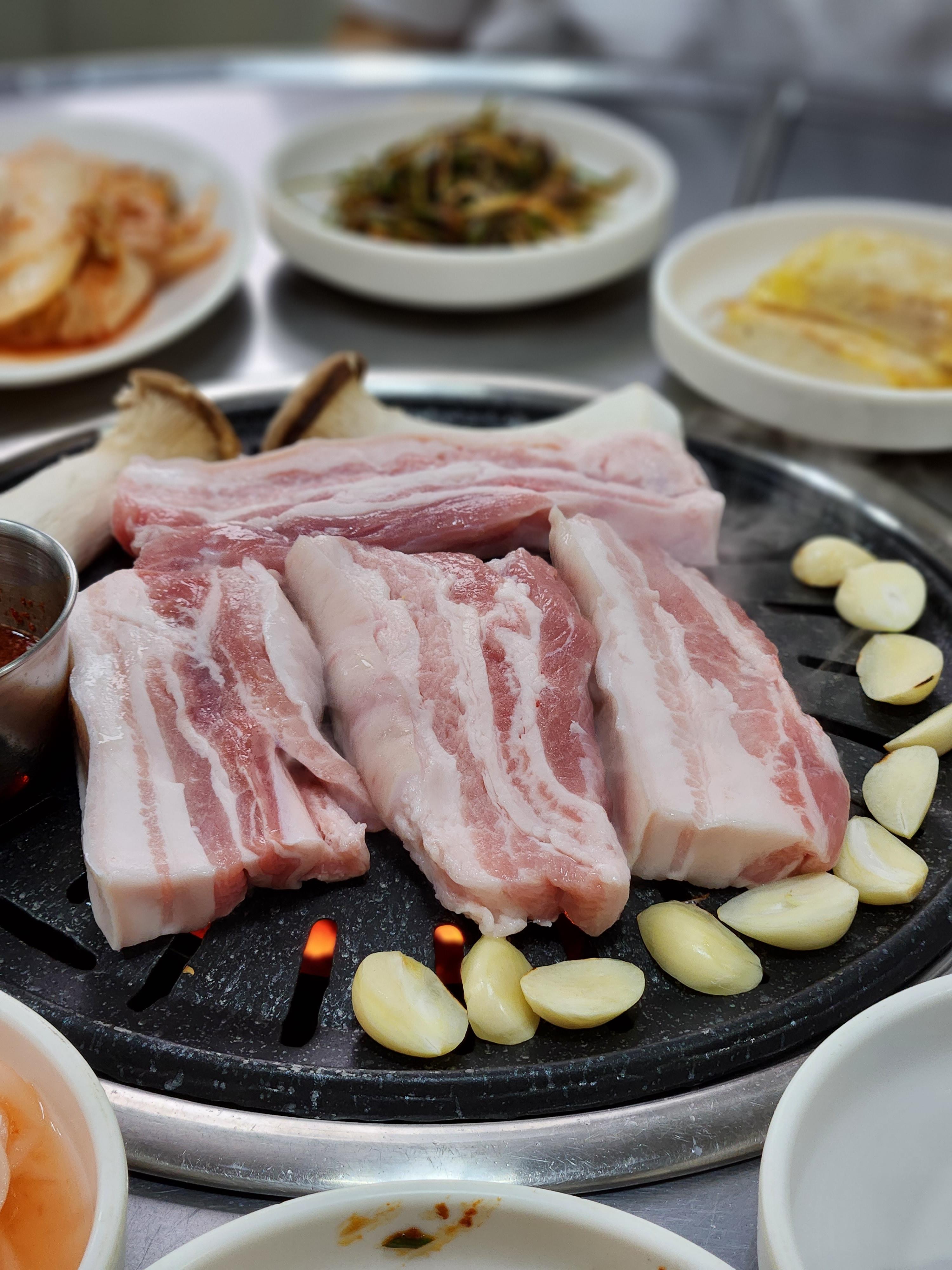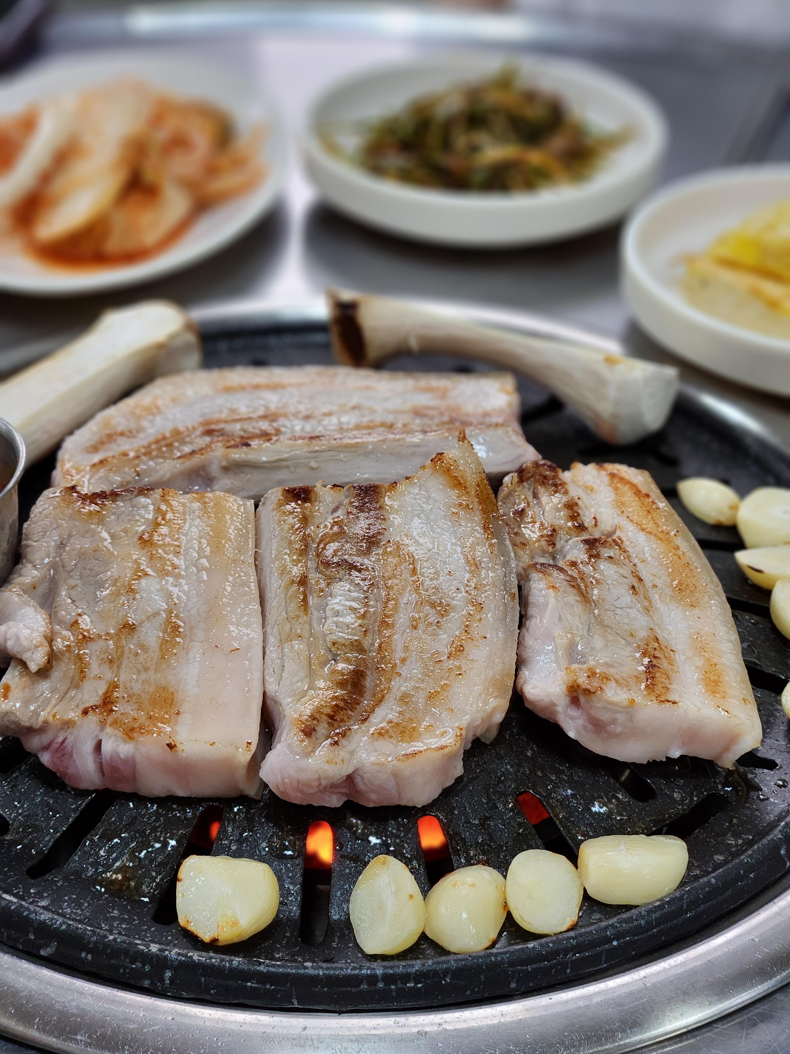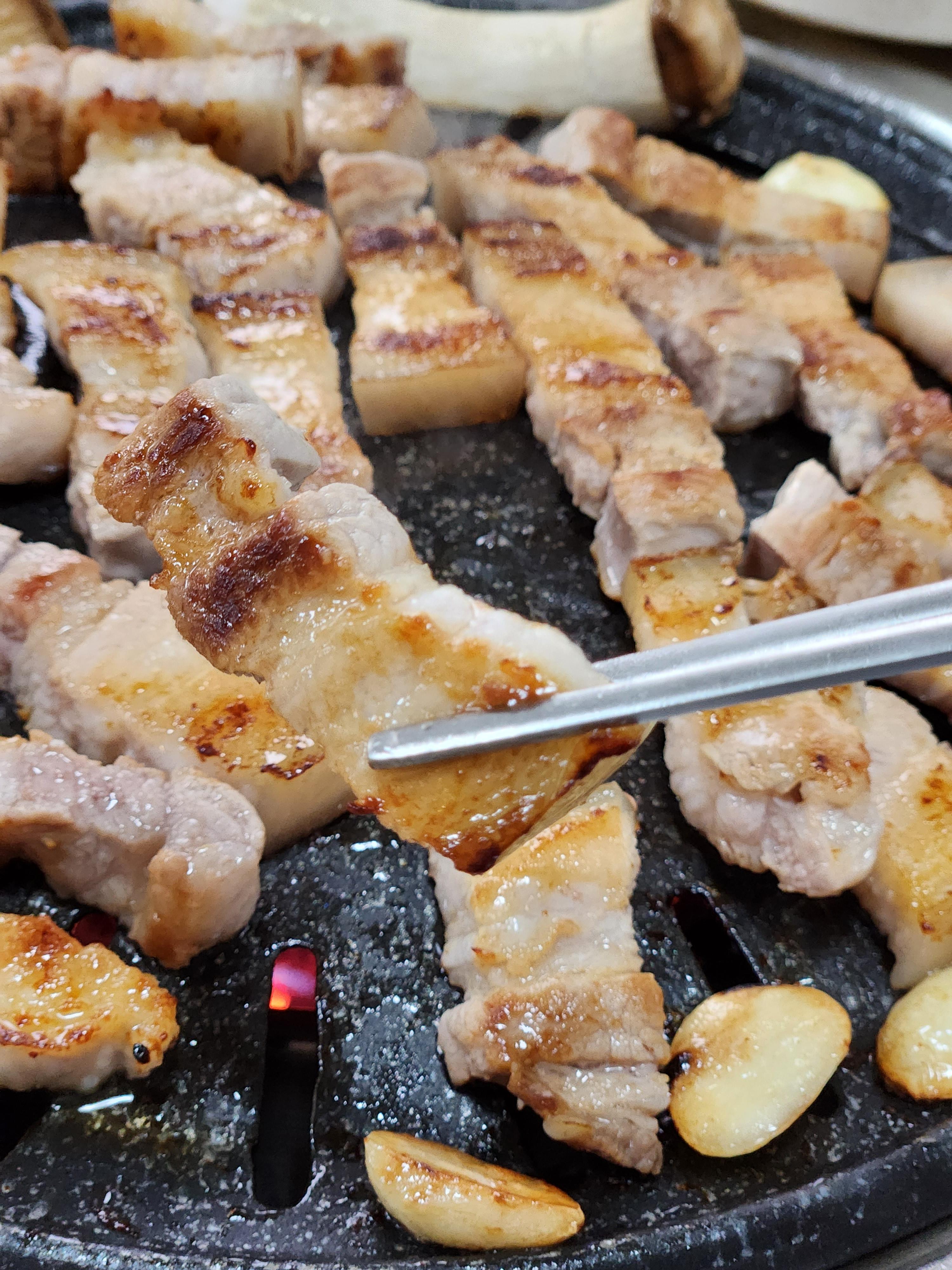 마늘도 불판에 올려 구워먹고 멜젯도 나오기 때문에 완벽하게 삼겹살을 즐기기좋았어요.