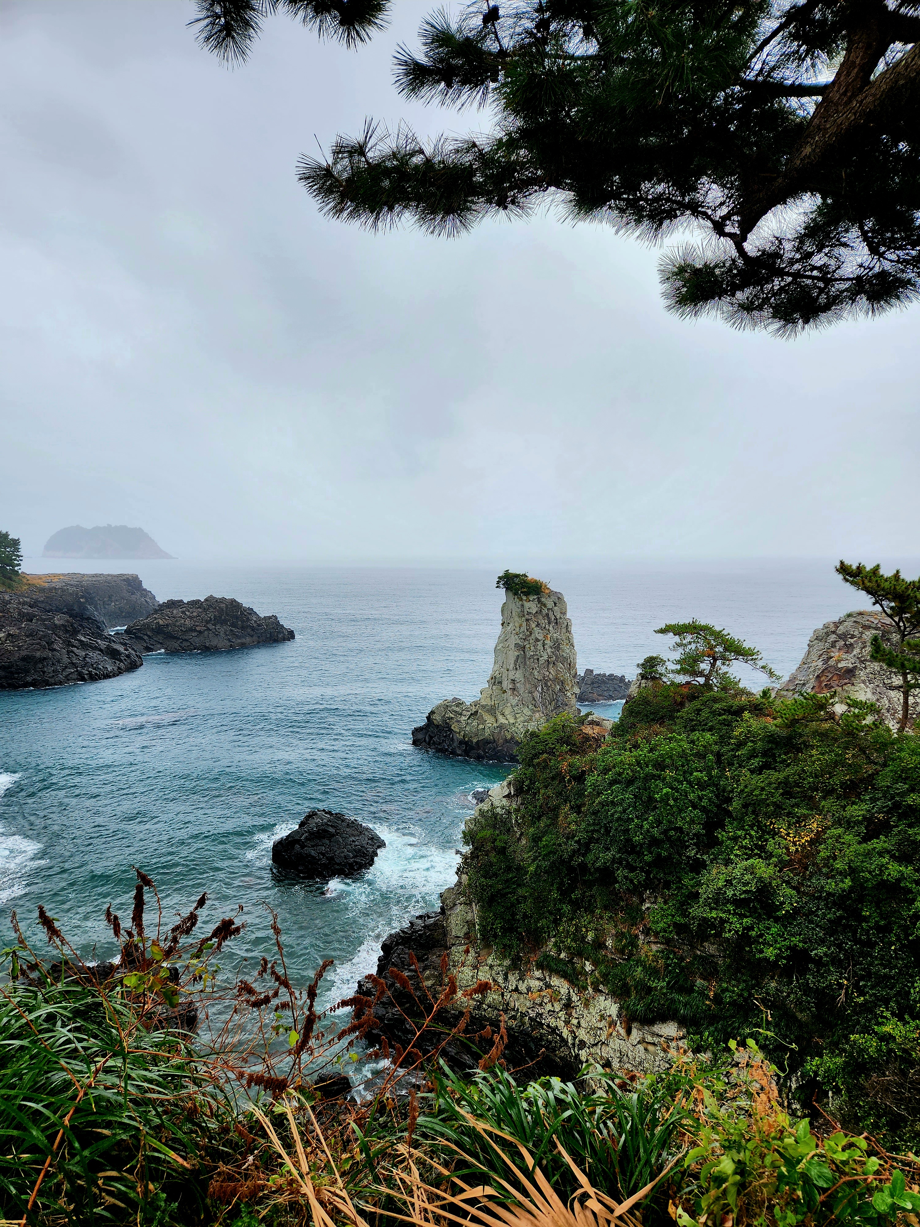 바위 꼭데기에는 작은 소나무도 있고 절벽이 아름답고 멋진 풍경이에요.