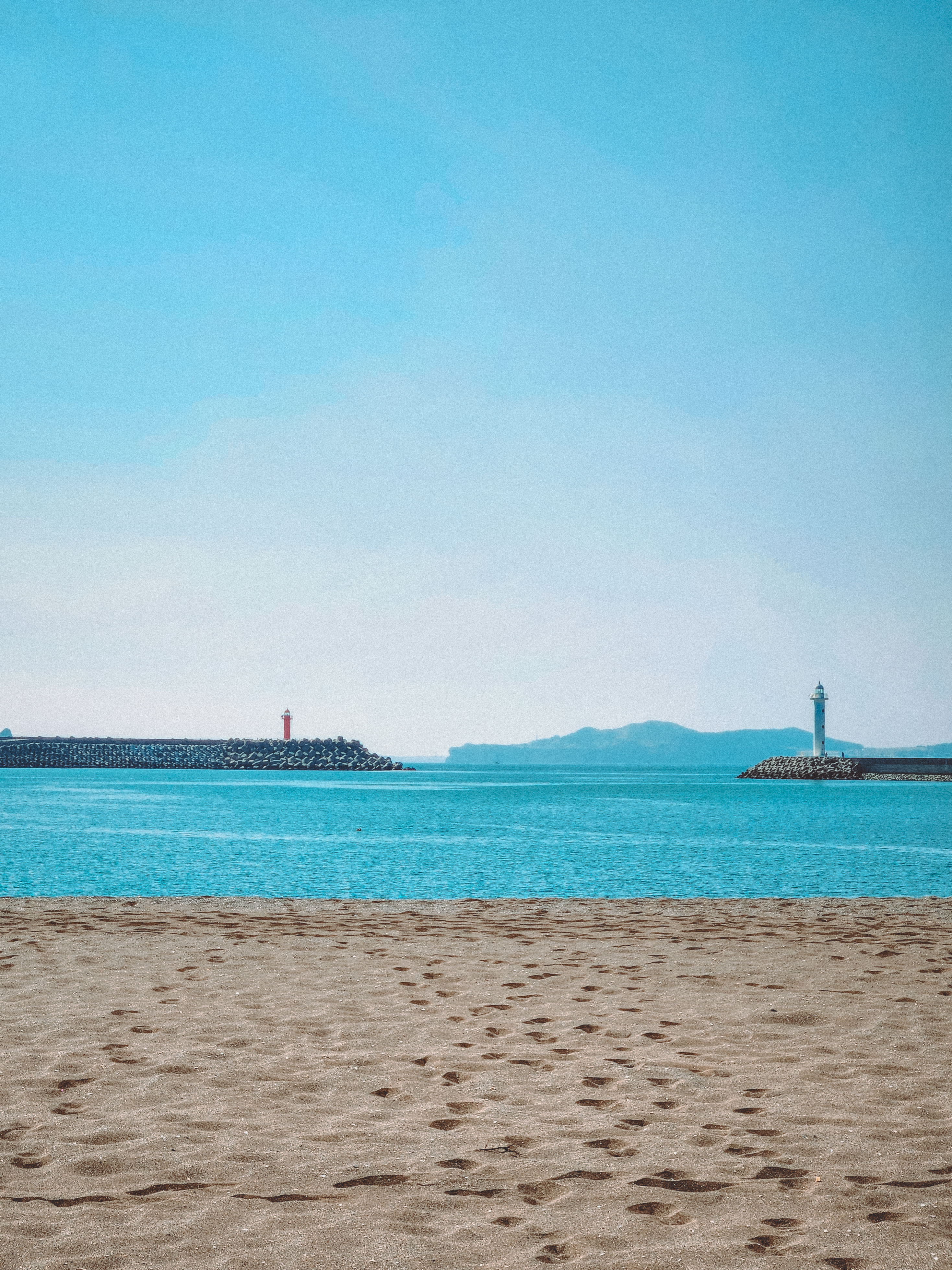 하얀모래가 아닌 살짝 검은 모래인데, 백사장이 꽤 넓은 편이에요.