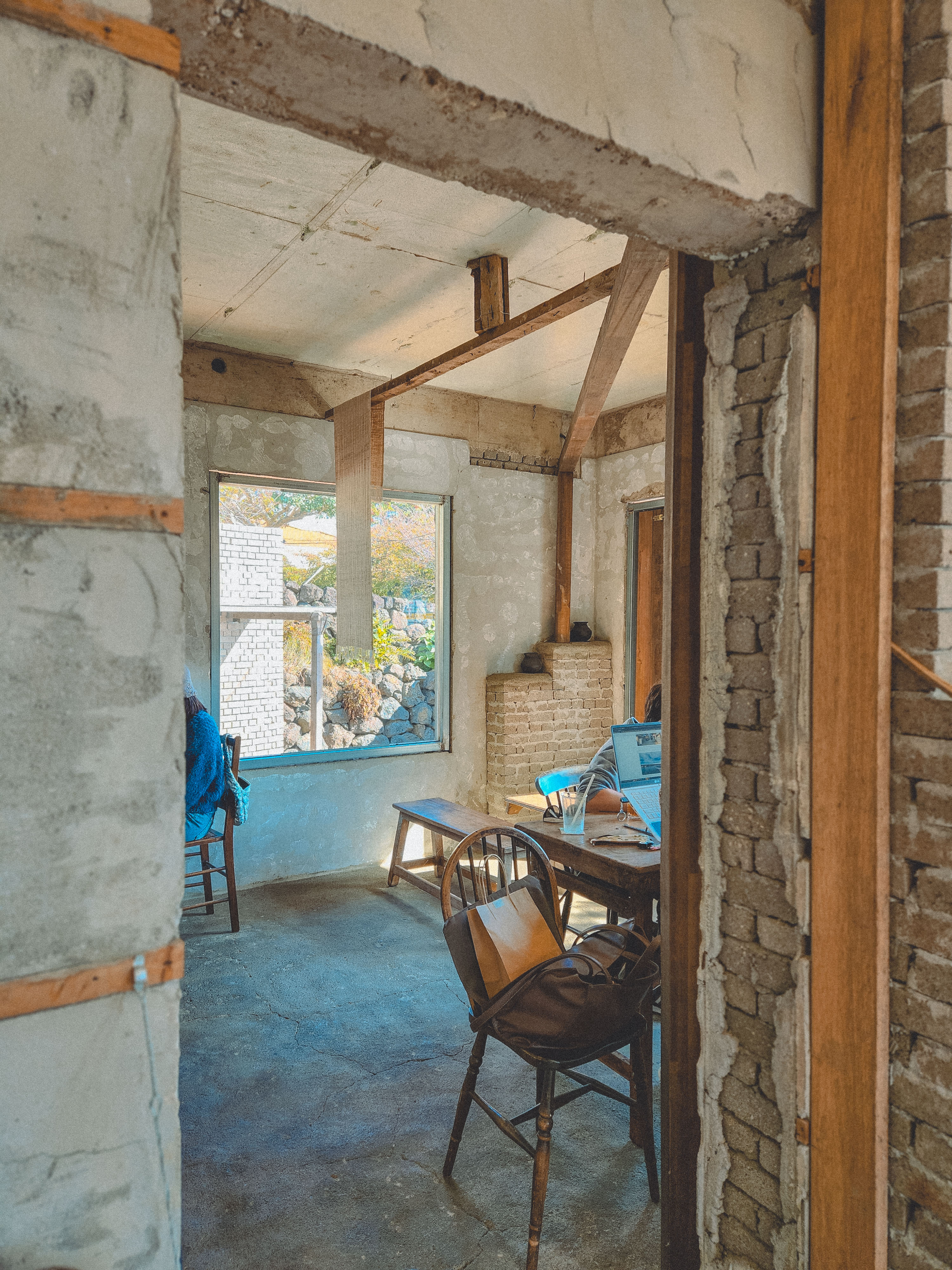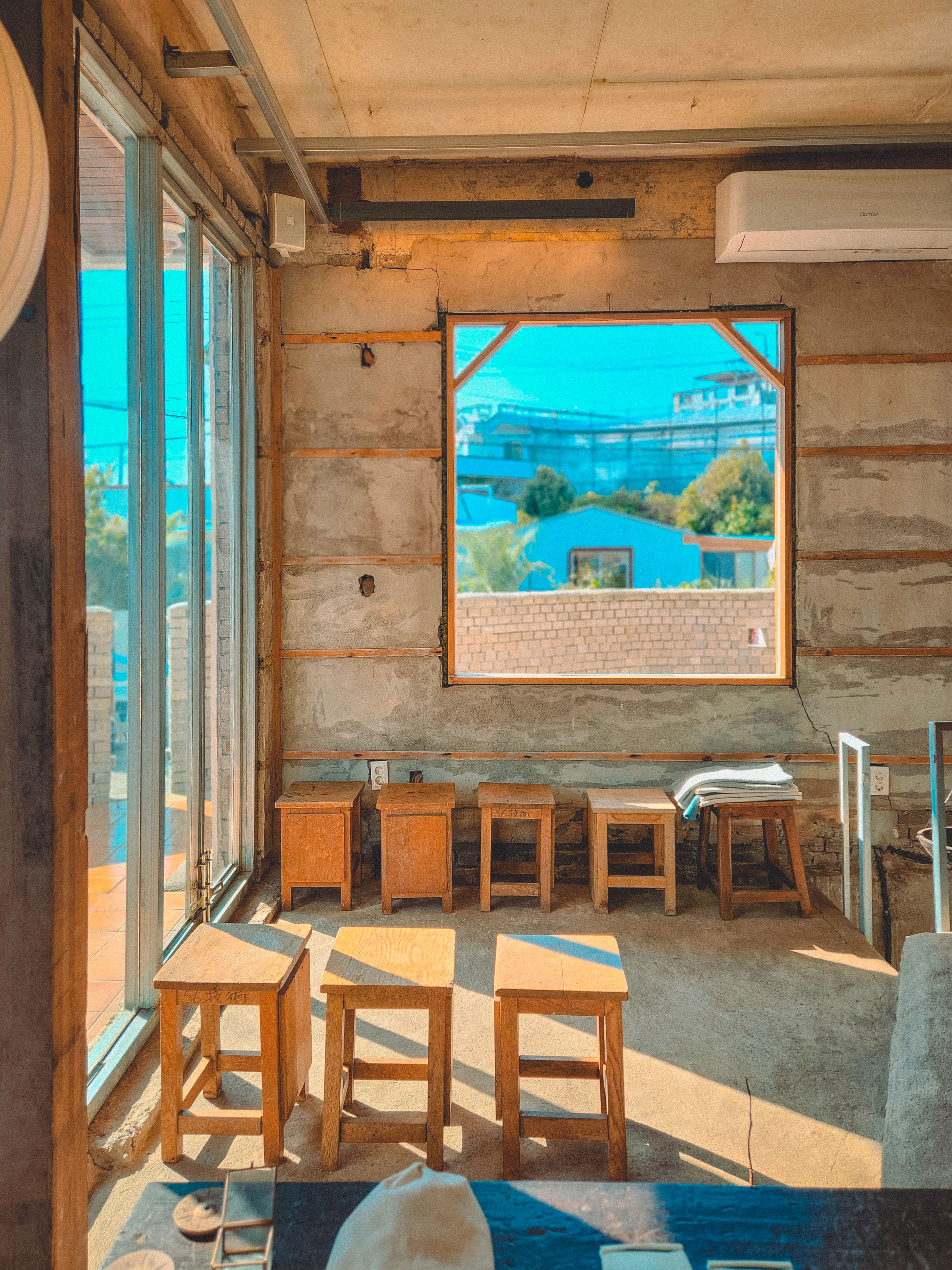 벽은 노출콘크리트에 창문도 목조까지만 한 느낌이 정말 특이하고 신기했어요.