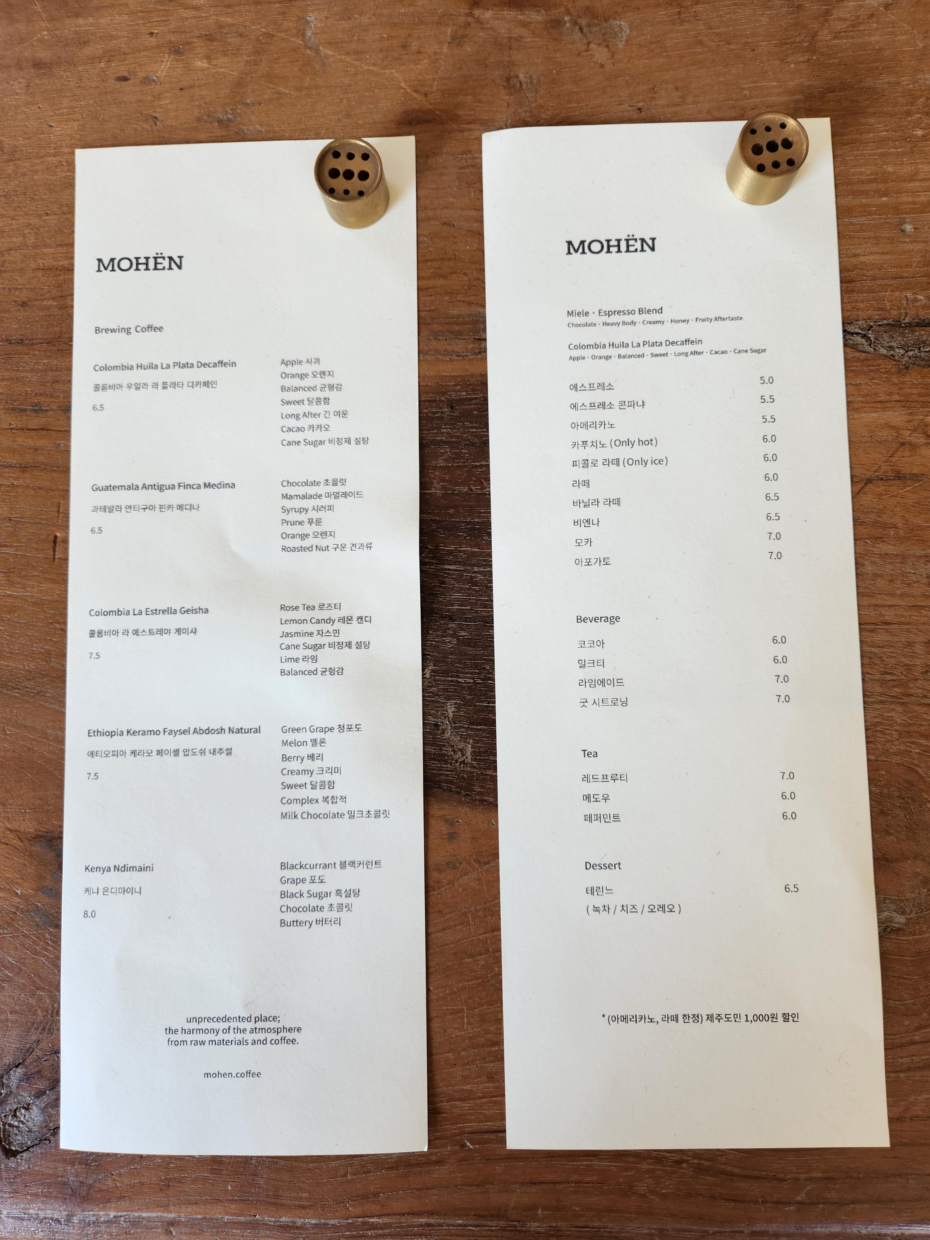 카페 모헨 영업시간 10:00 - 18:00