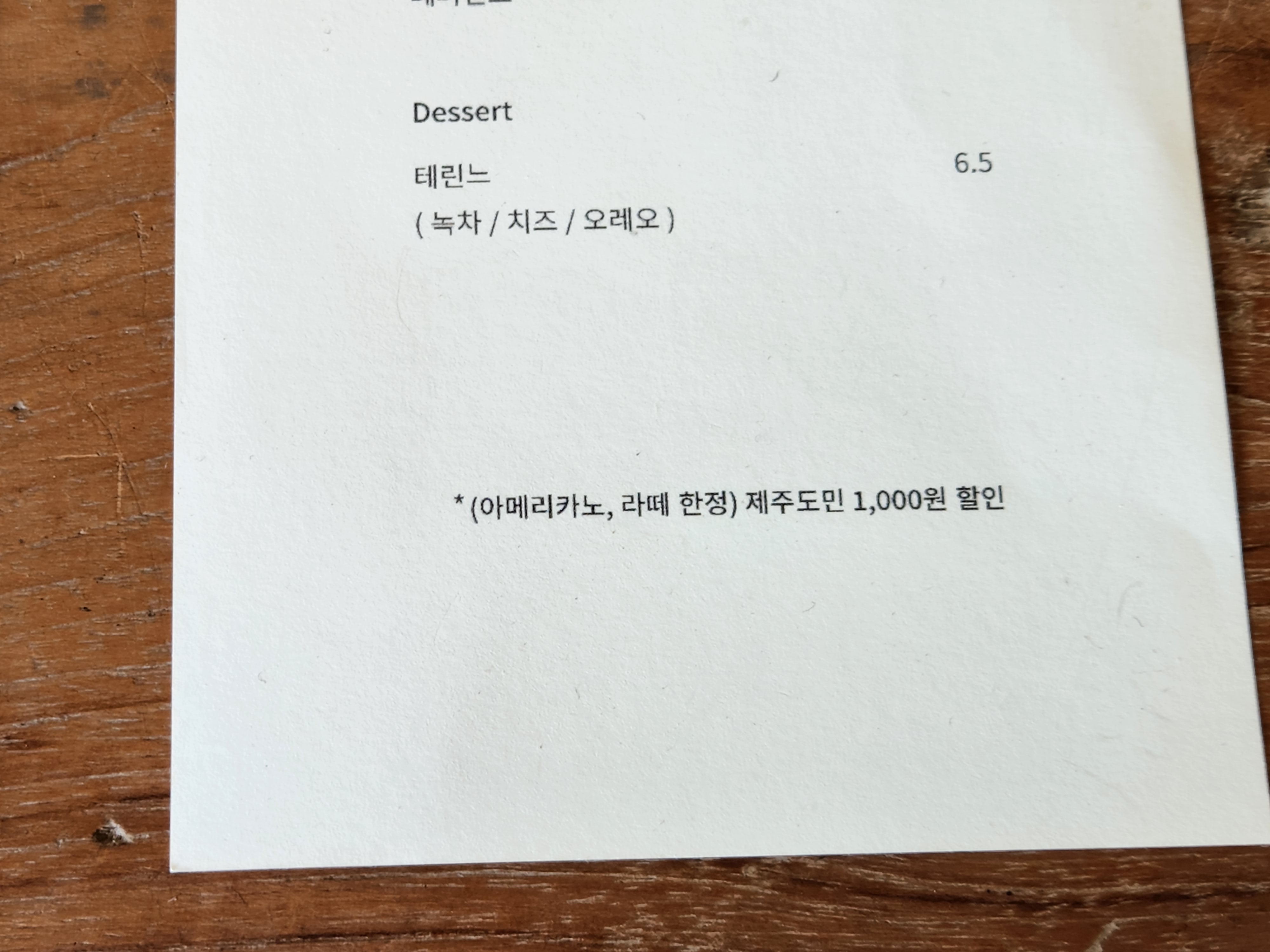 그리고 자세히 메뉴판의 밑을 보면 제주도민은 아메리카노나 라떼 한정으로