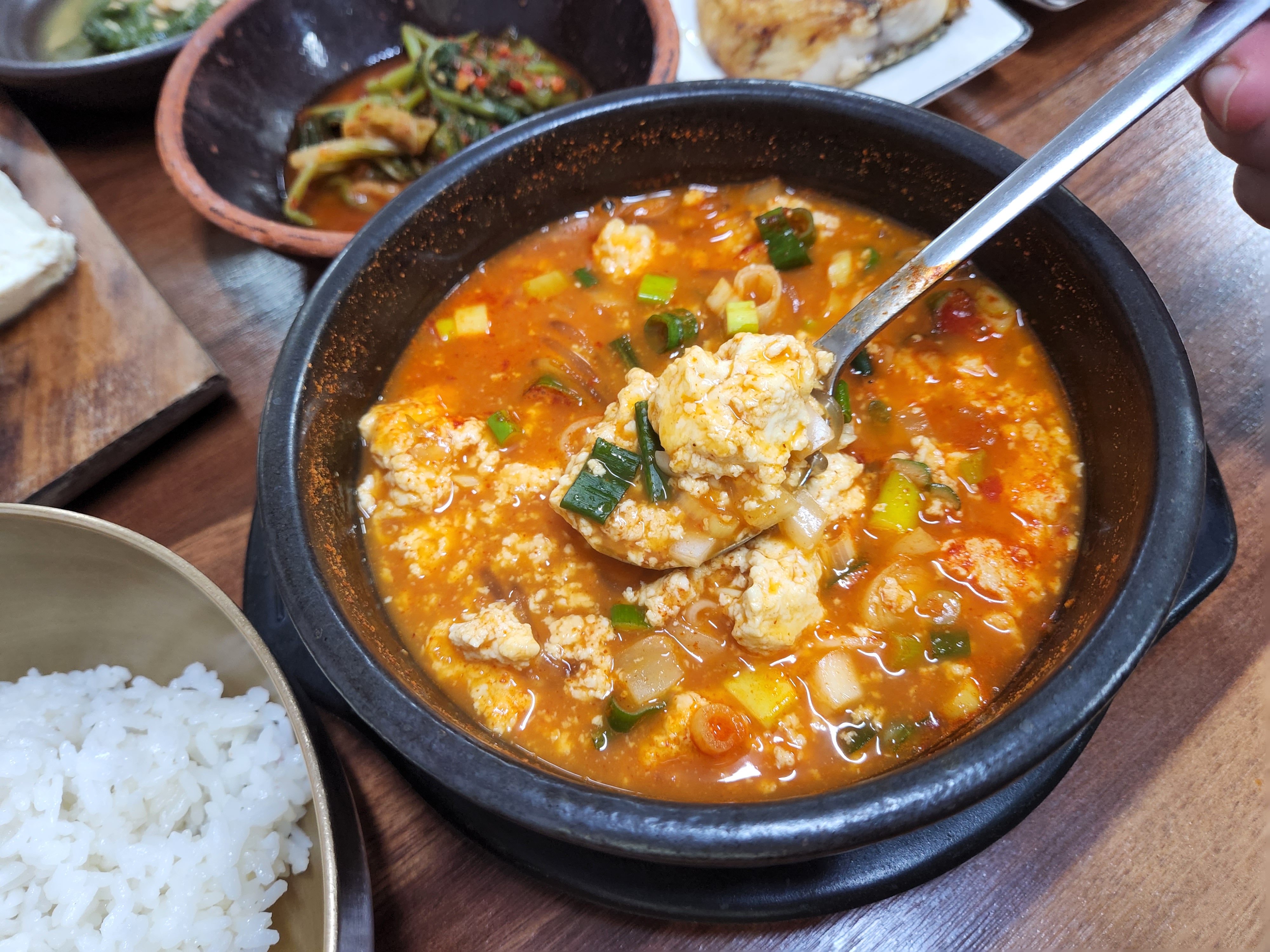 얼큰한 순두부를 주문했는데 정말 매운냄새가 팍 올라와요.