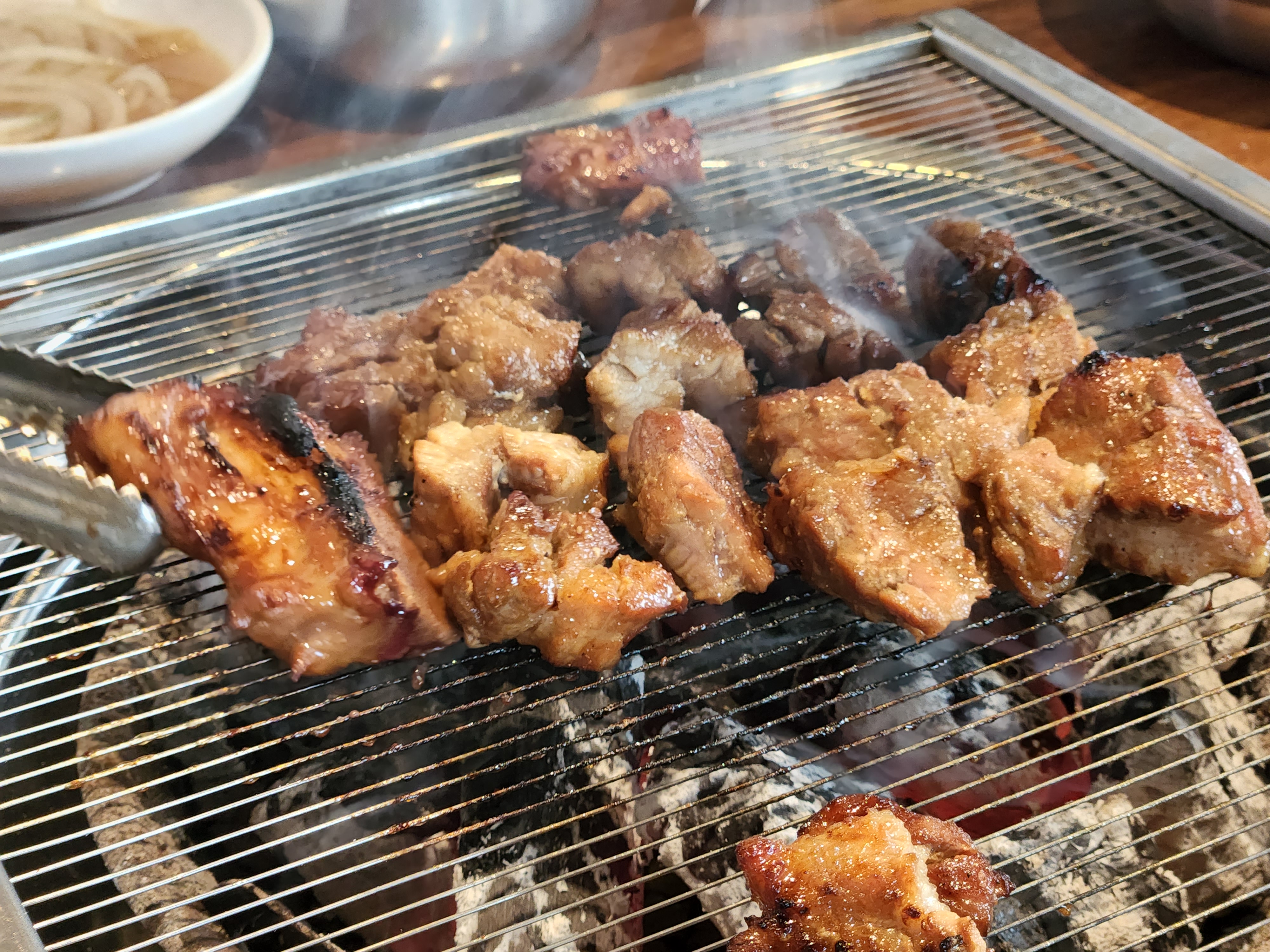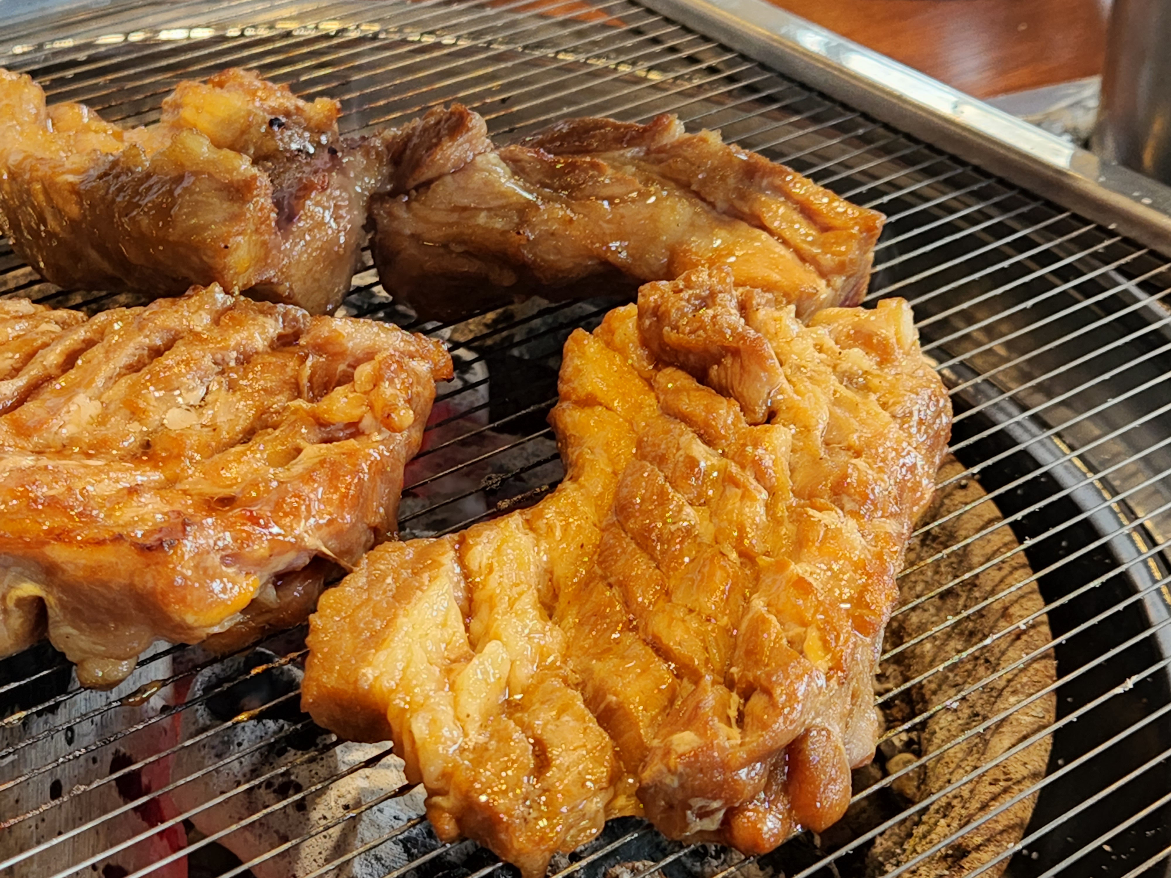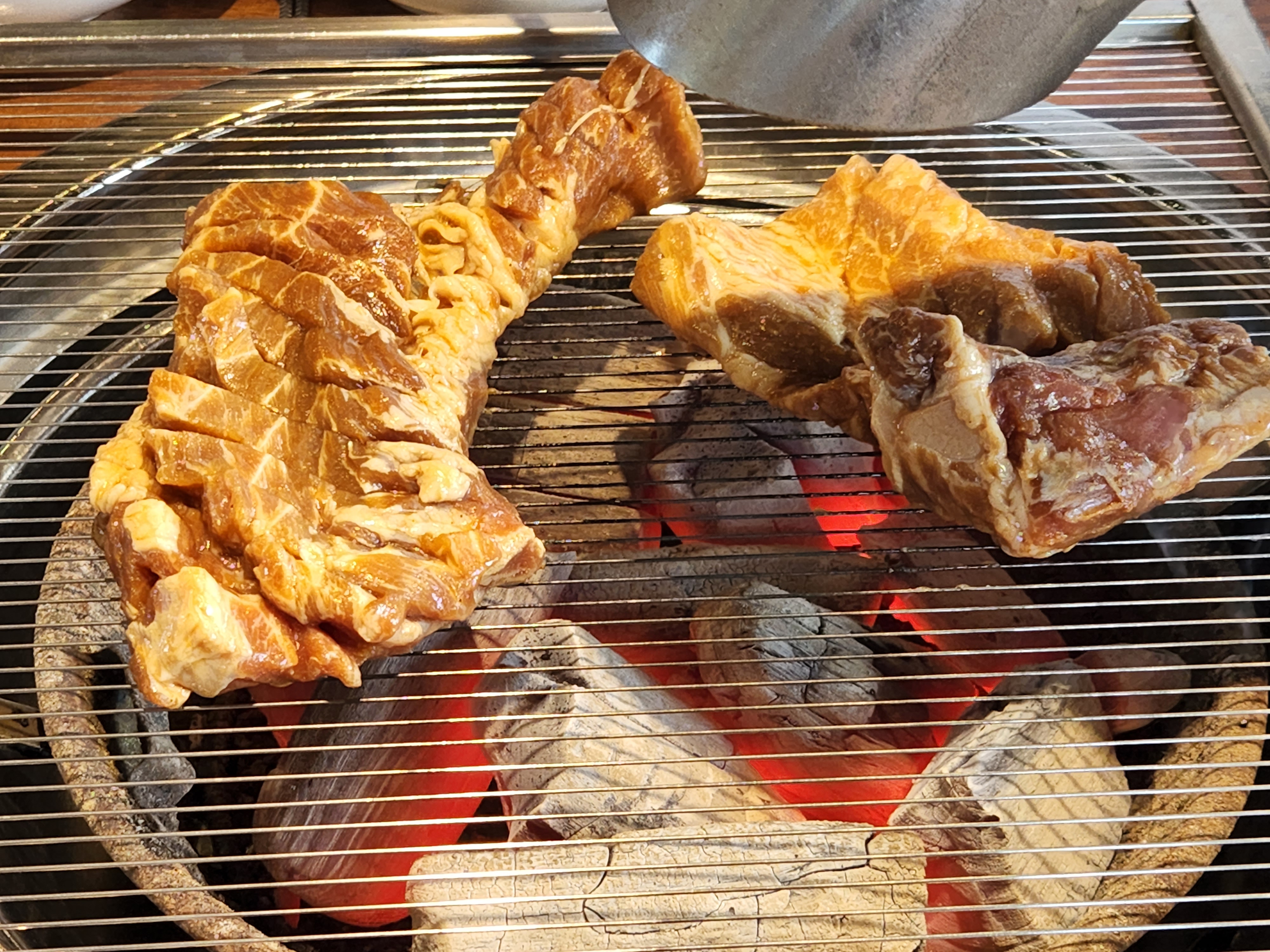 불판이나 가스에 먹어도 나쁘지 않지만, 양념갈비는 숯불에 먹는것이 가장 맛있는 것 같아요.