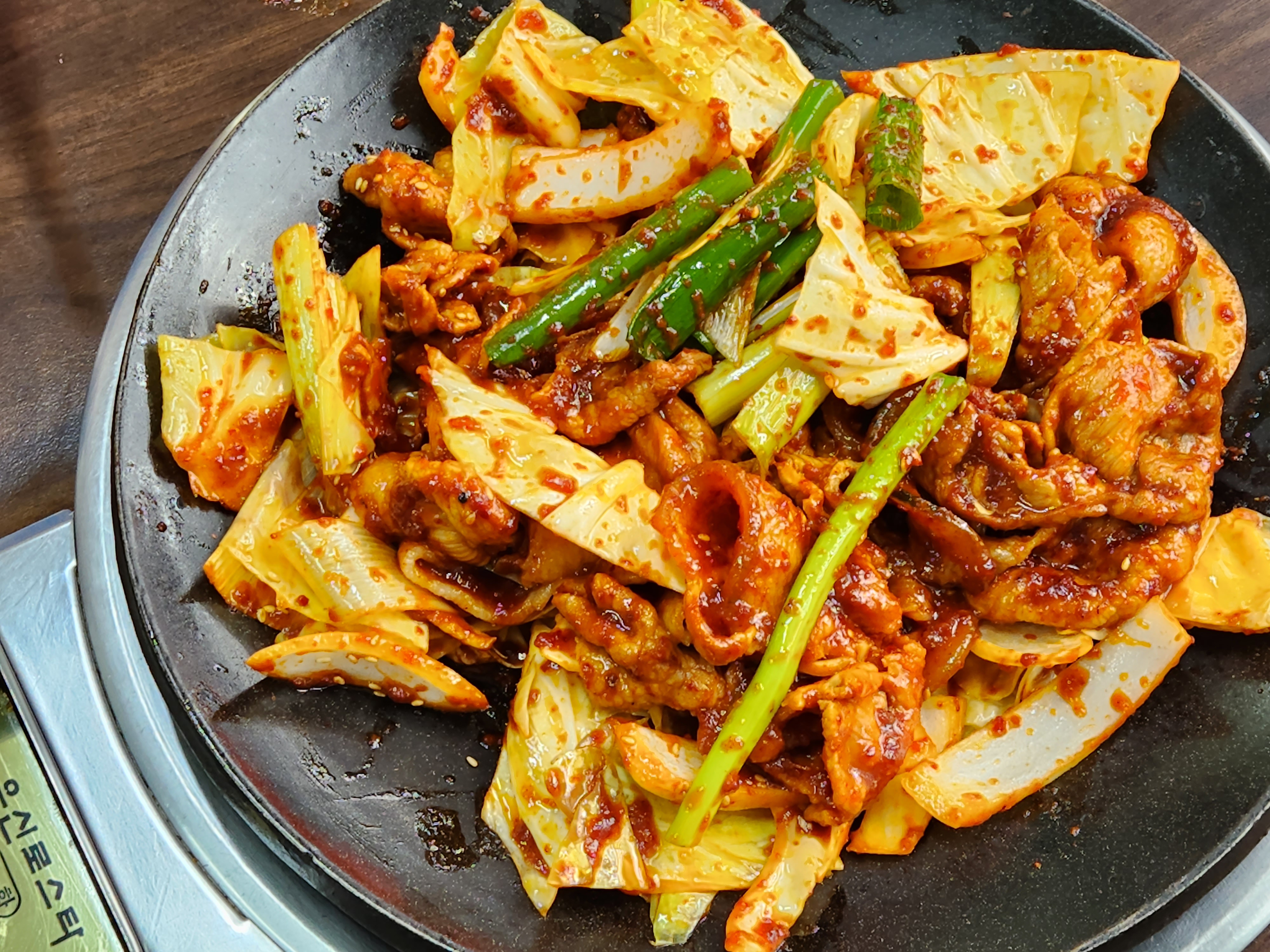 보기만 해도 무척 먹음직스러운 제육볶음비주얼입니다.