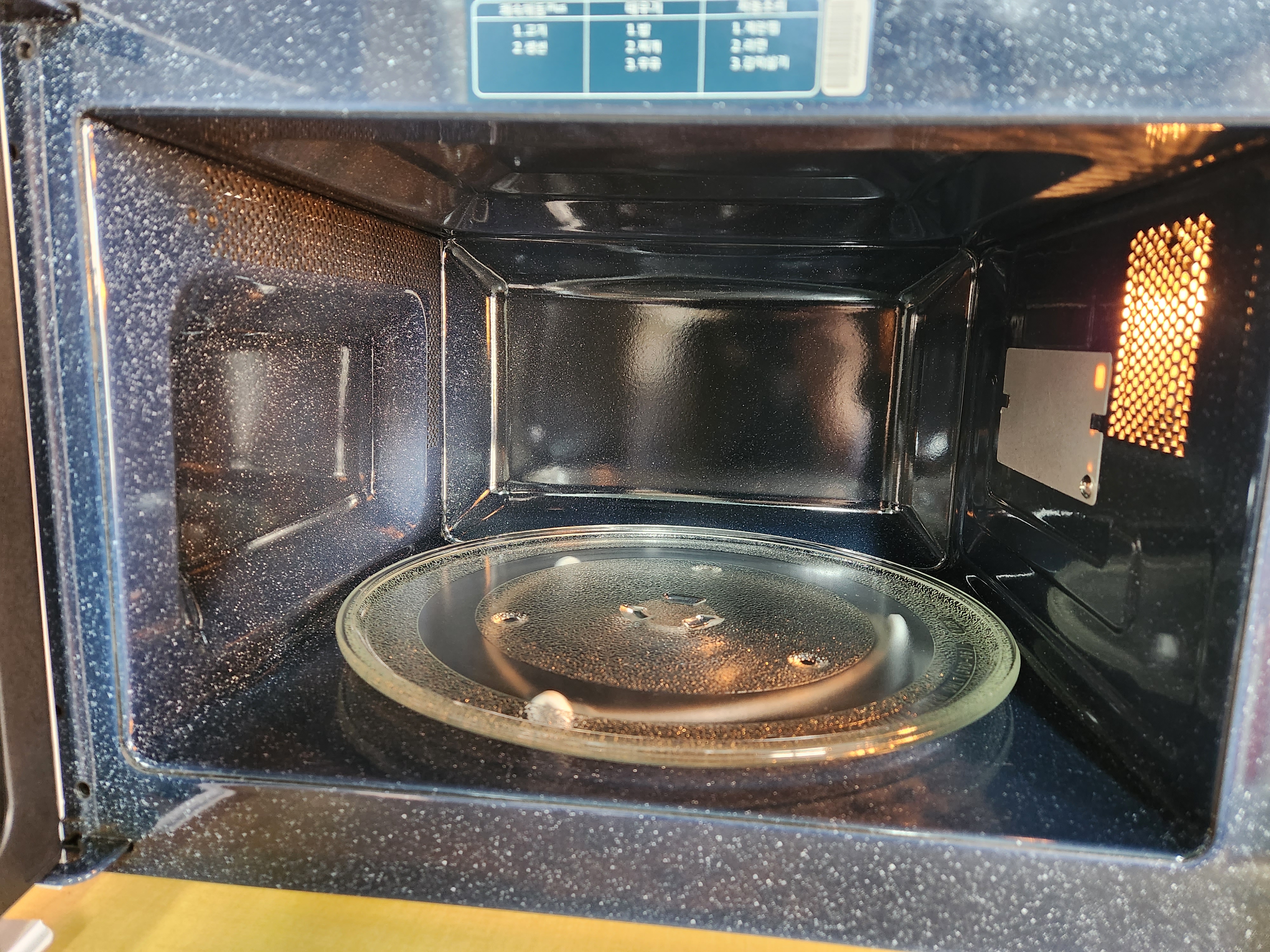 전자레인지 문을 열면 이렇게 불빛이 나오고,