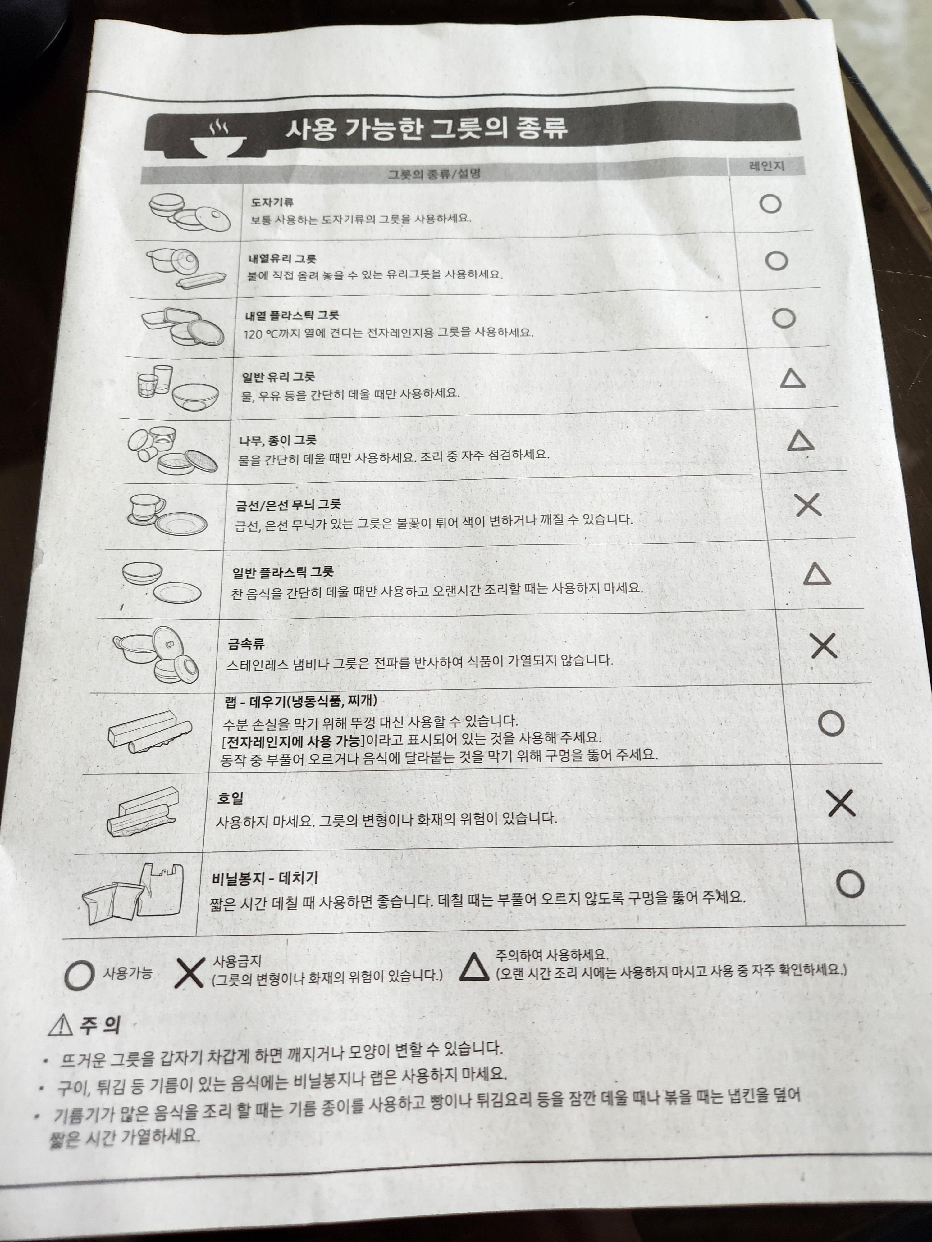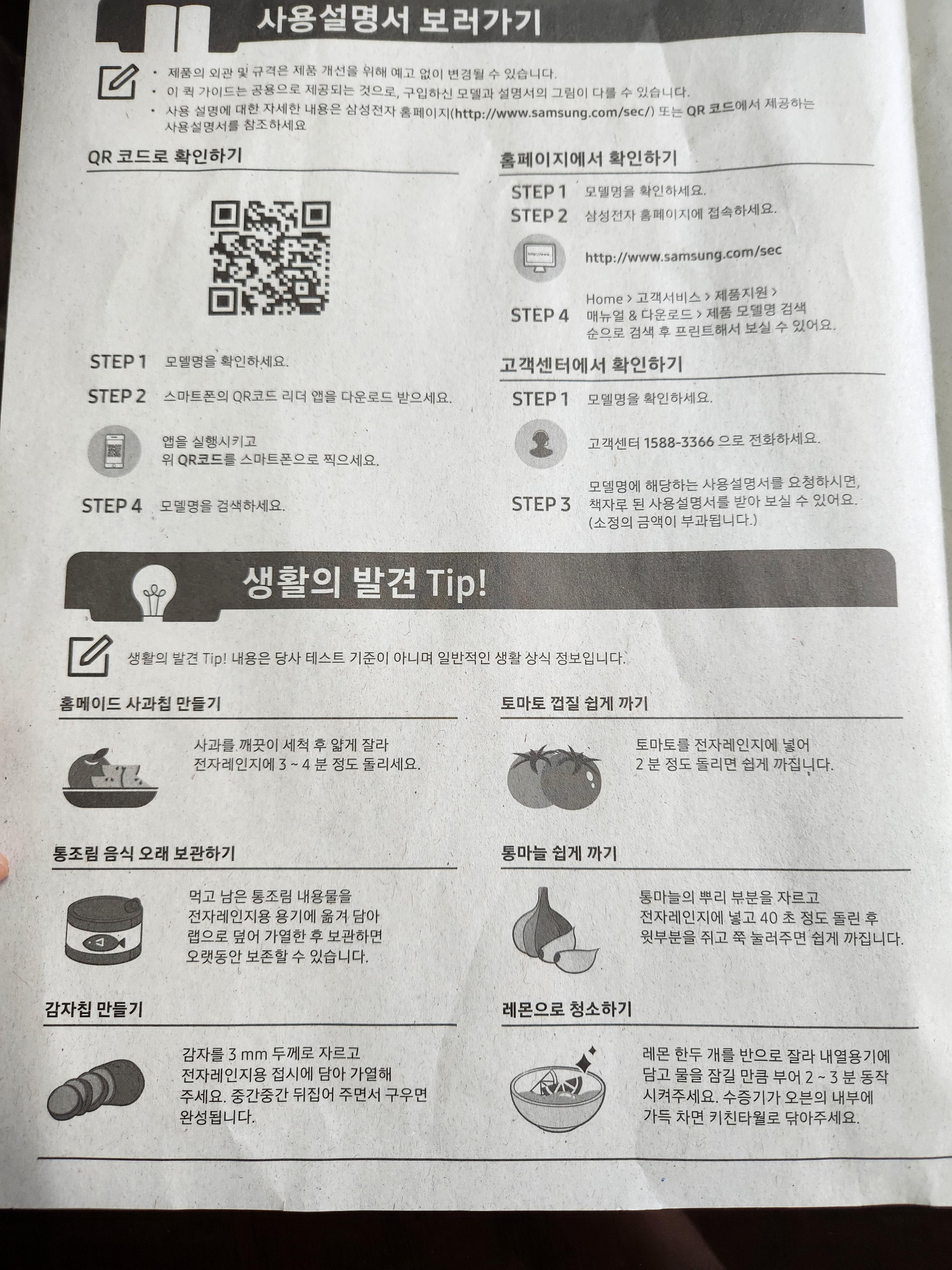 간단한 설명서가 들어있는데, 대부분 전자레인지도
