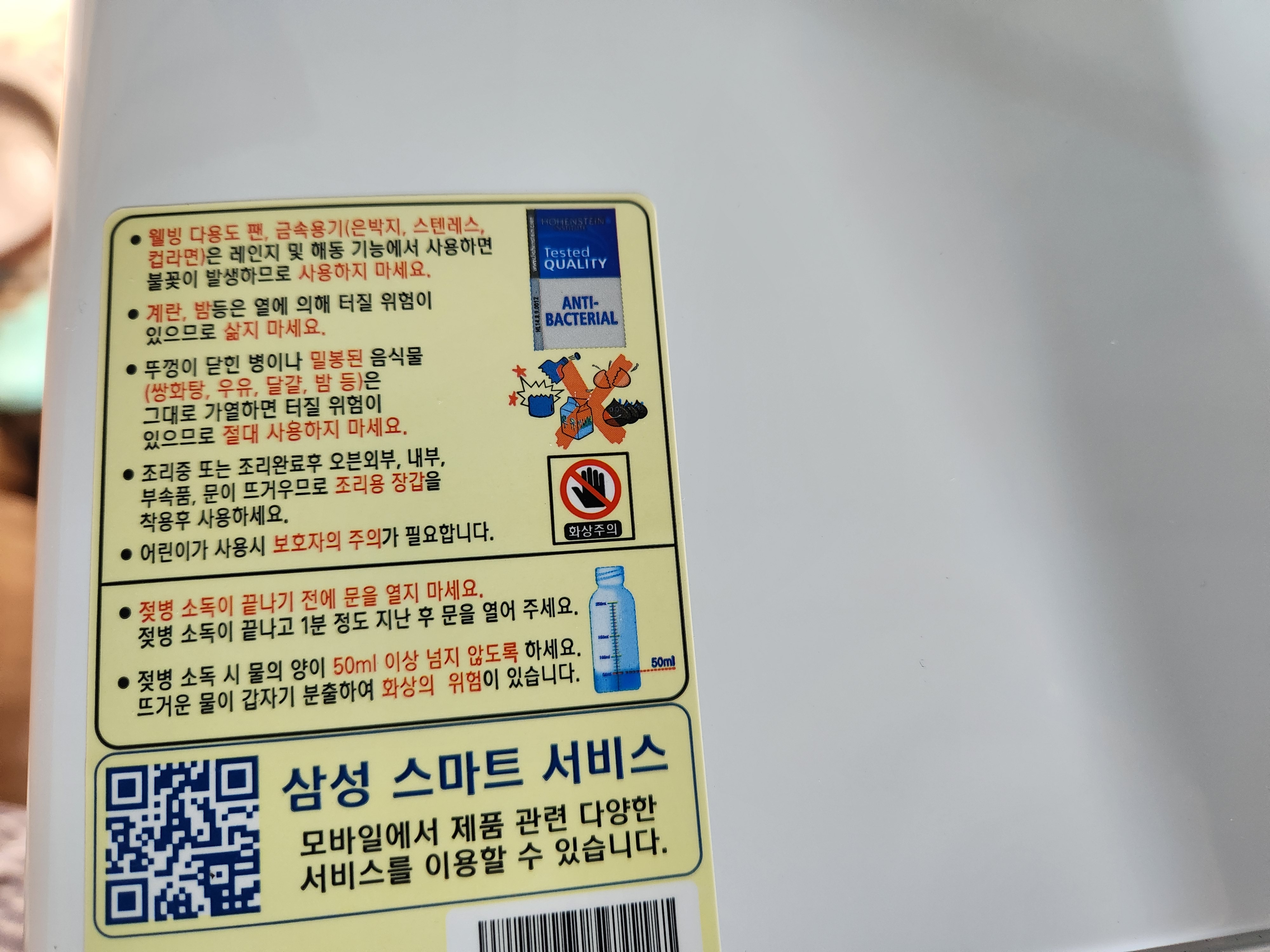 전자레인지 위에 상세한 주의사항이 적혀있으니