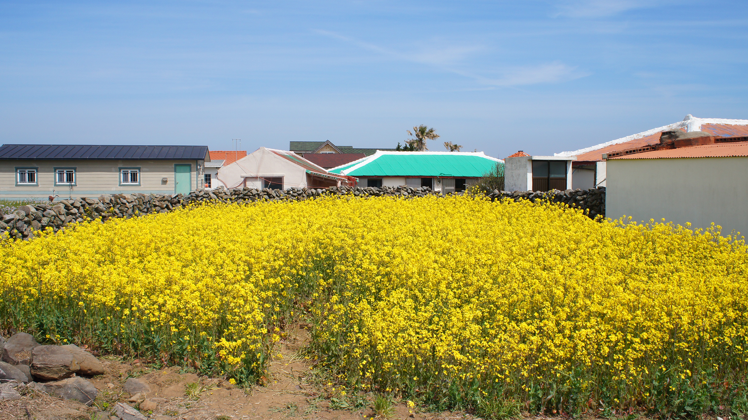 가파도 유채꽃이 더욱 멋있는 이유는 바로 높은 건물이 없고 바다와 알록달록한 집들의 배경이 너무나 아름답기 때문인것 같아요.