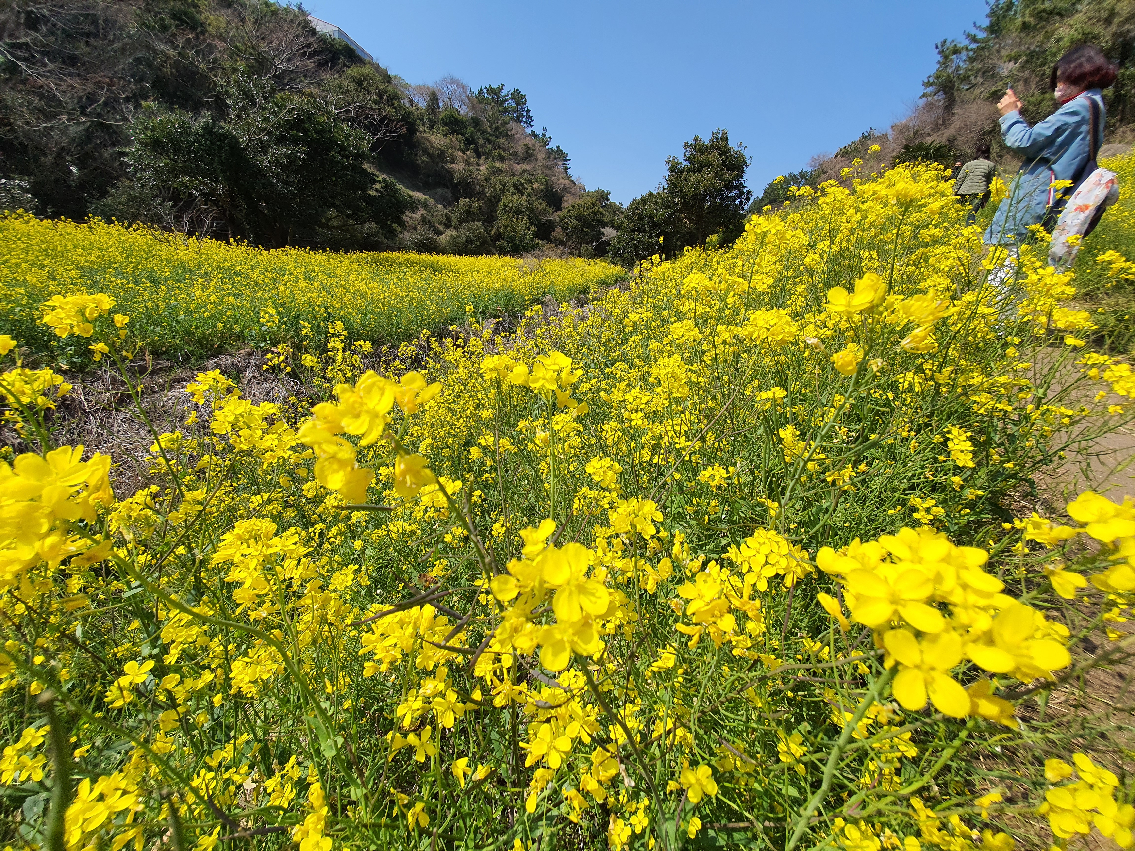 가벼운 외투만 걸쳐도 산책하기 딱 좋은 날씨이고 유채꽃과 사진을 찍기에도 매우 좋아요.