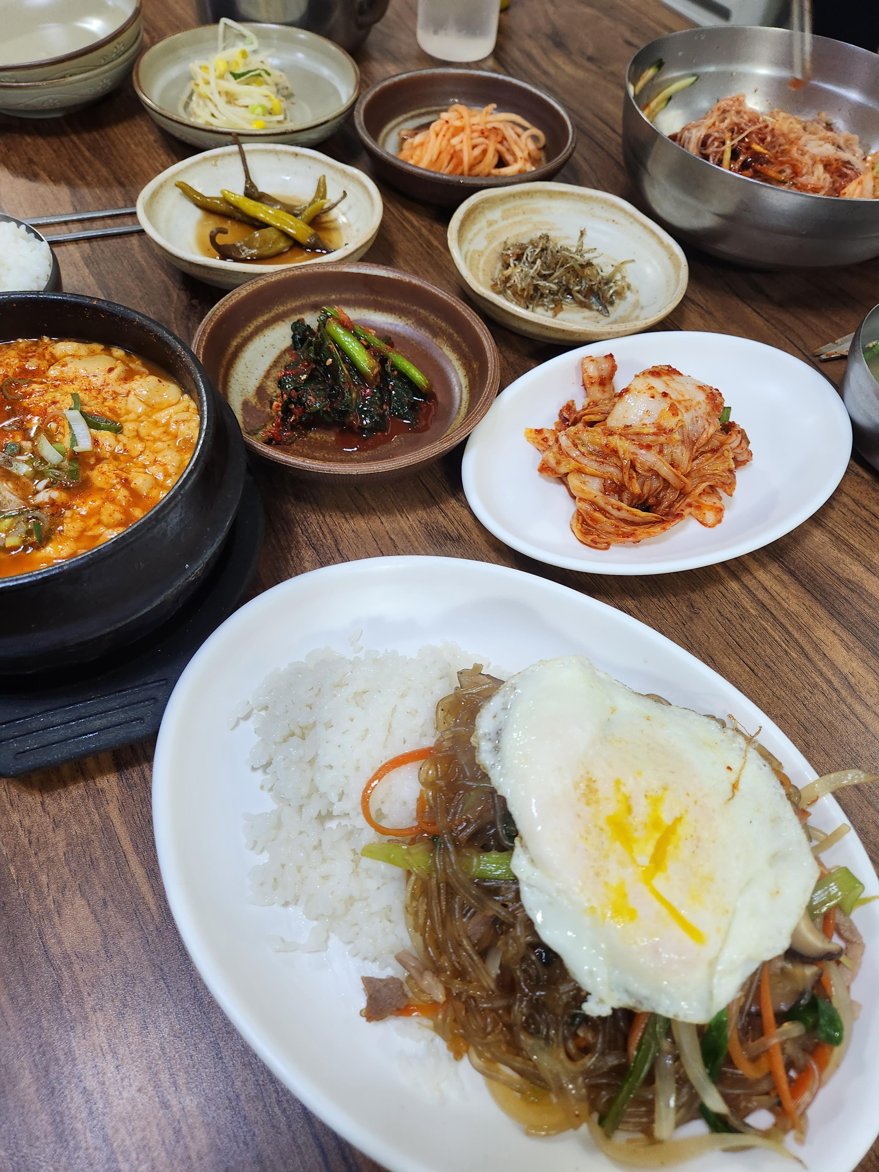 잡채밥 /비빔밥/순두부백반/칼국수/멸치국수/떡볶이/냉면 등등 여러가지를 판매해요.
