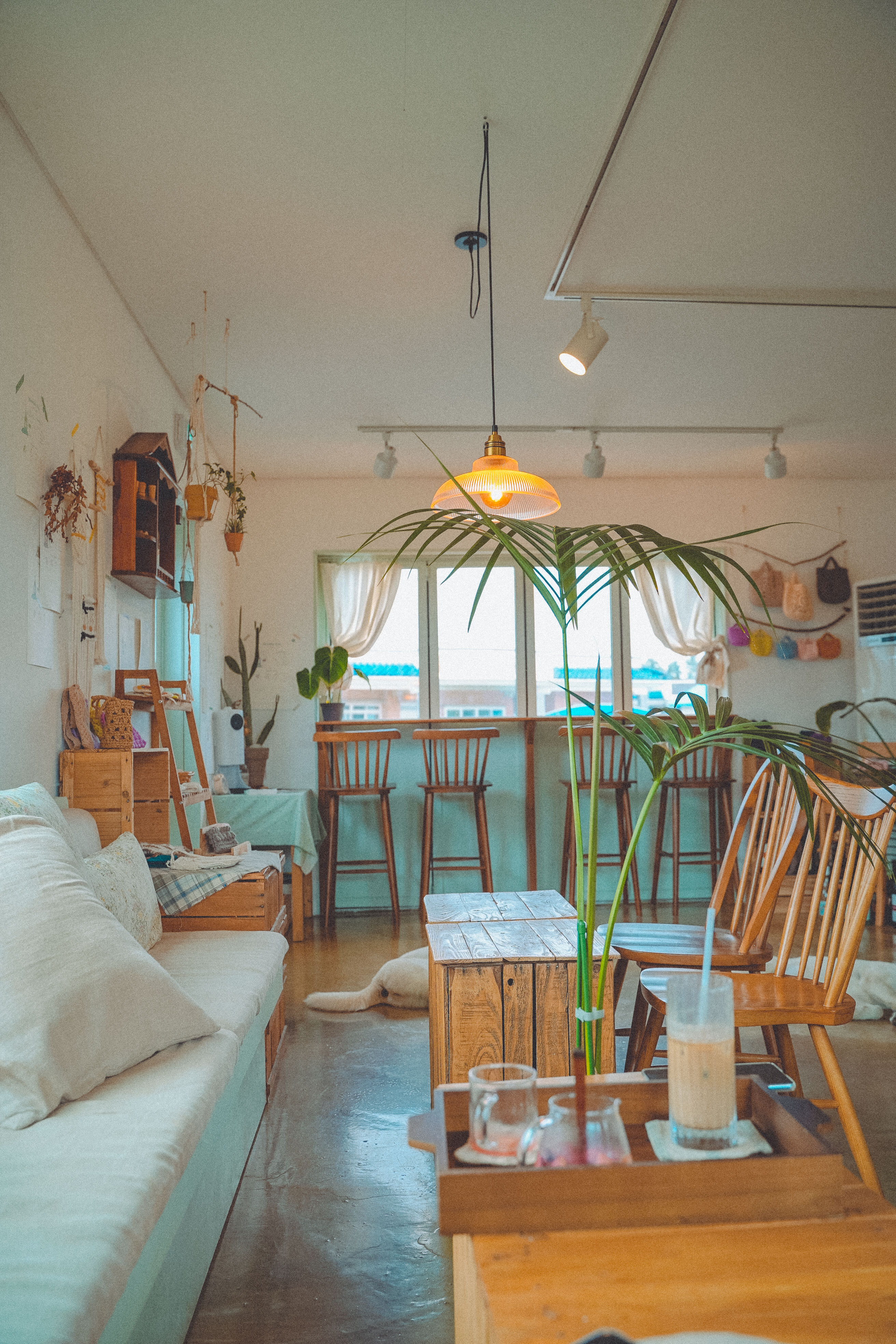 초록초록한 마당의 식물들이 너무나 잘 어울리는 제주 카페였어요.