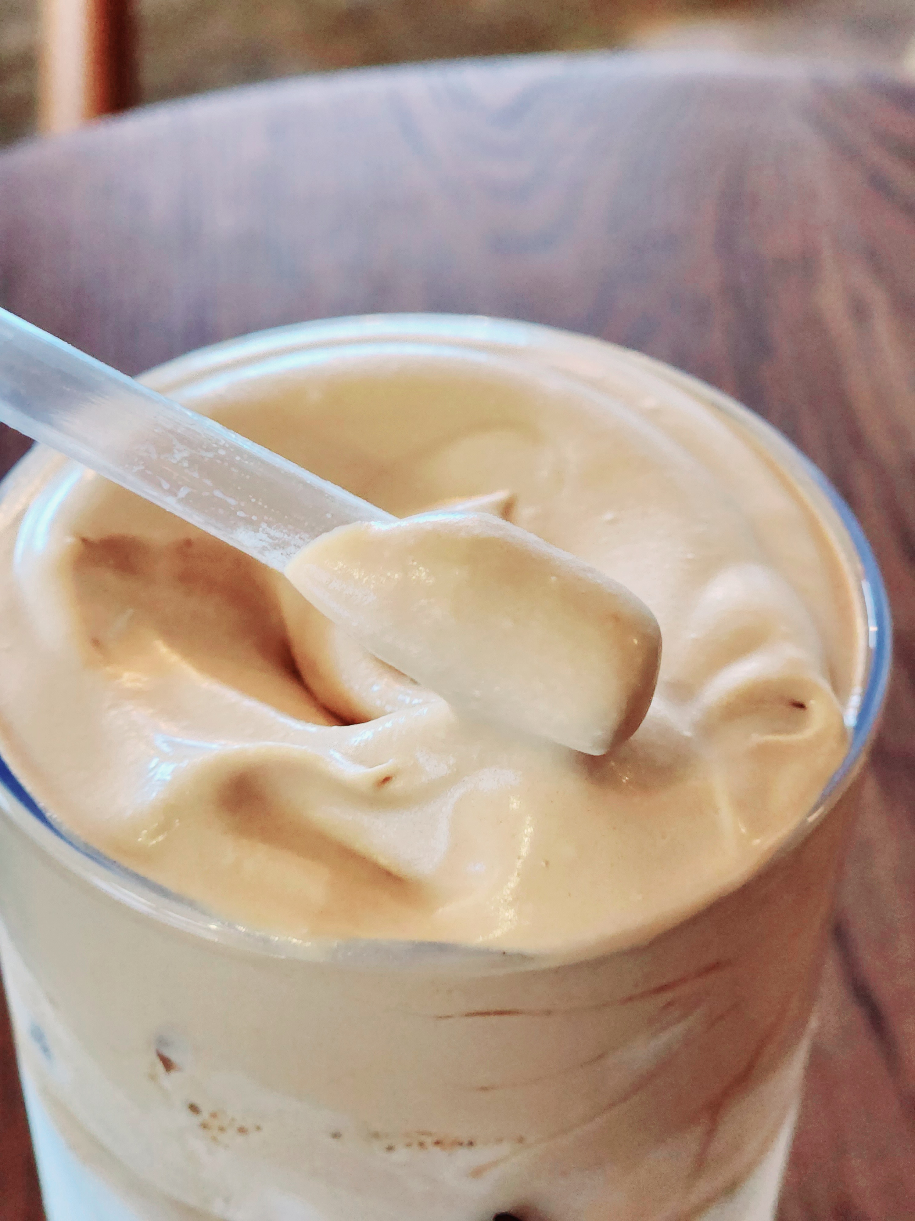 약간 올라간 크림이 꾸덕하고 달고나 같으면서도 스카치캔디 맛이 많이 나는 음료였어요.