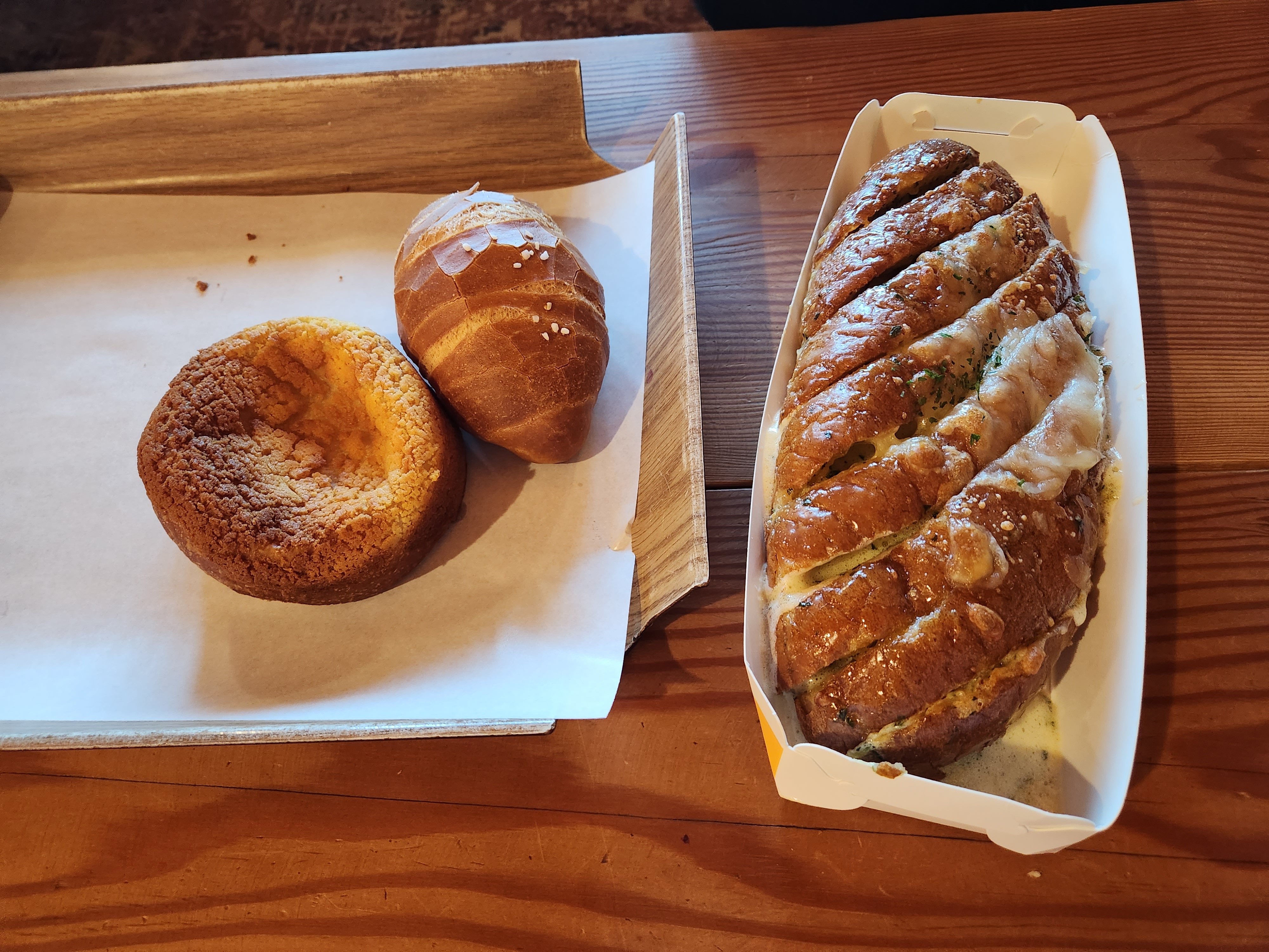 소금빵, 옥수수가 들어간 빵, 마늘빵 이렇게 3가지를 맛보았습니다.