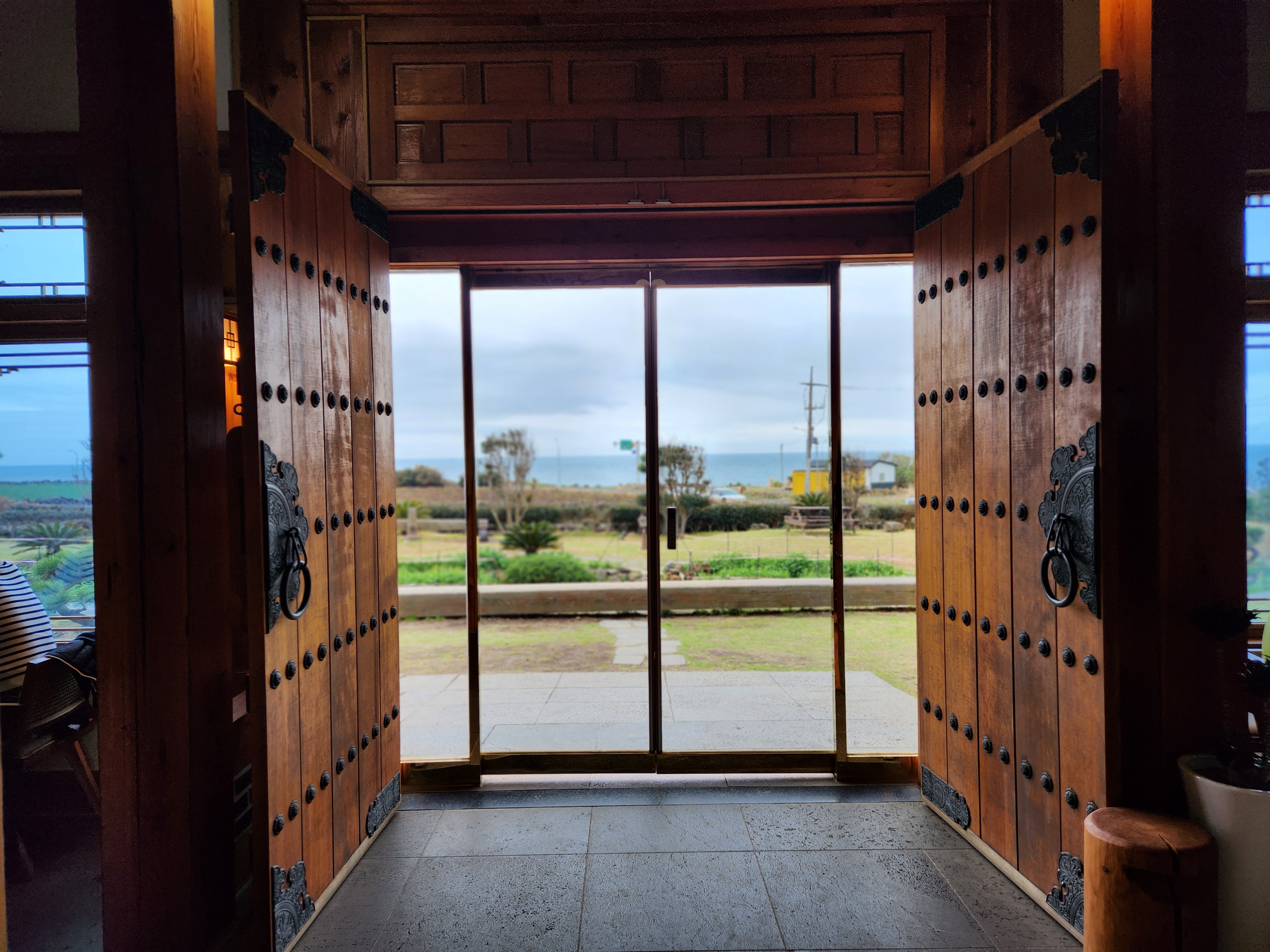 카페 내부에서 멀리 대정읍 바다가 보이기 때문에