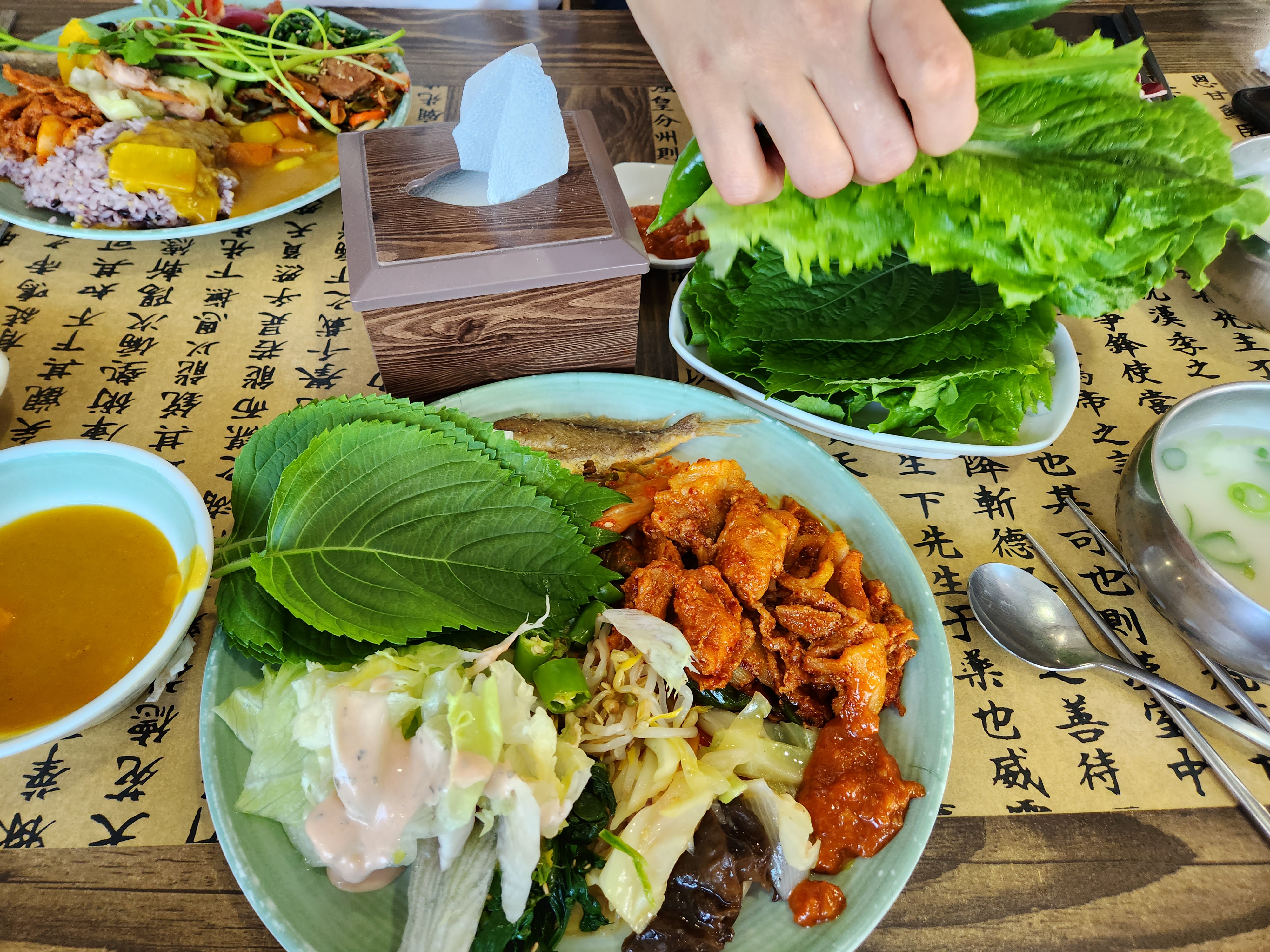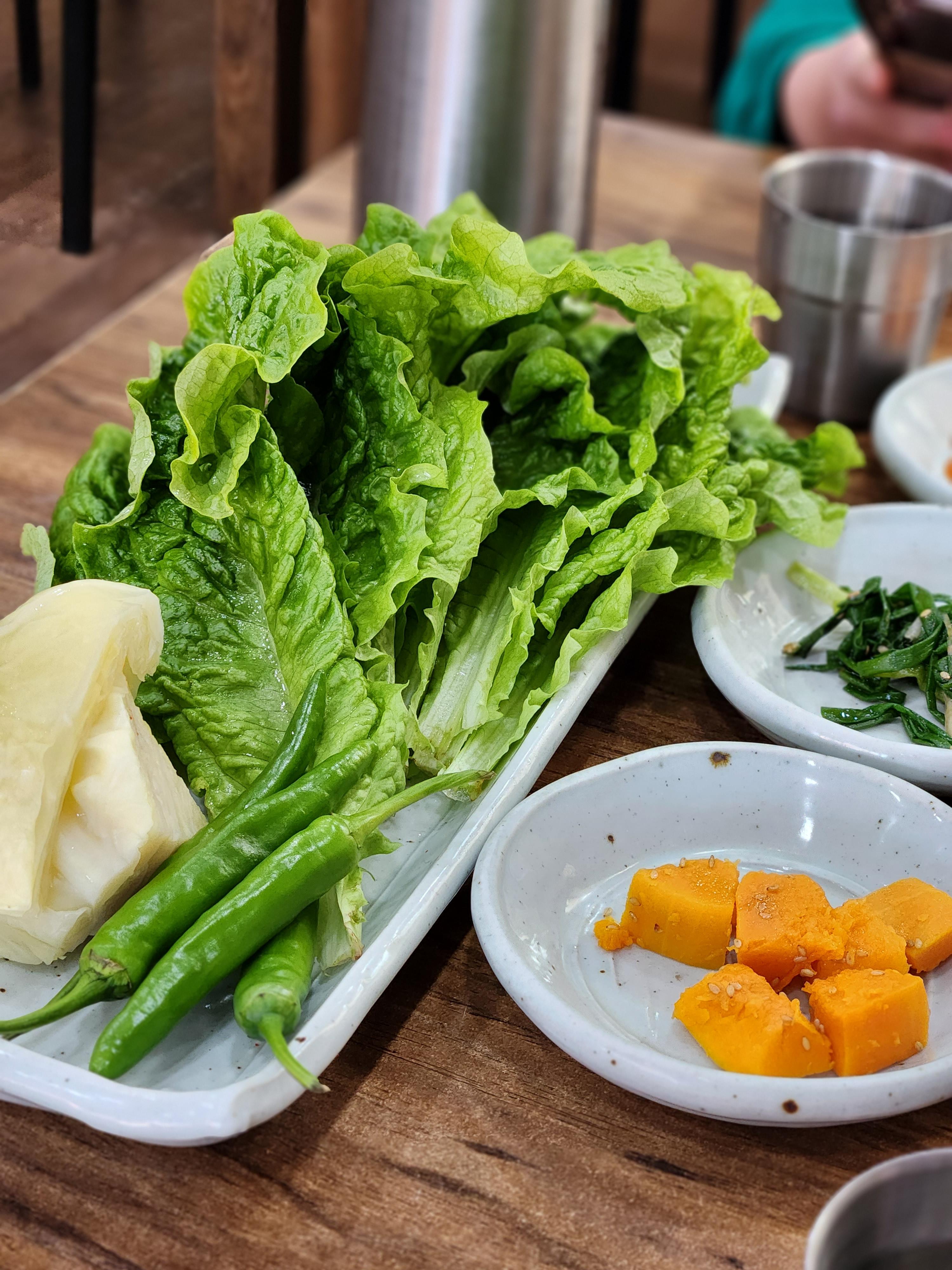 쌈을 싸먹을 수 있는 야채와, 카레, 사골국까지 정말 먹을 종류가 많았어요.ㅎㅎ