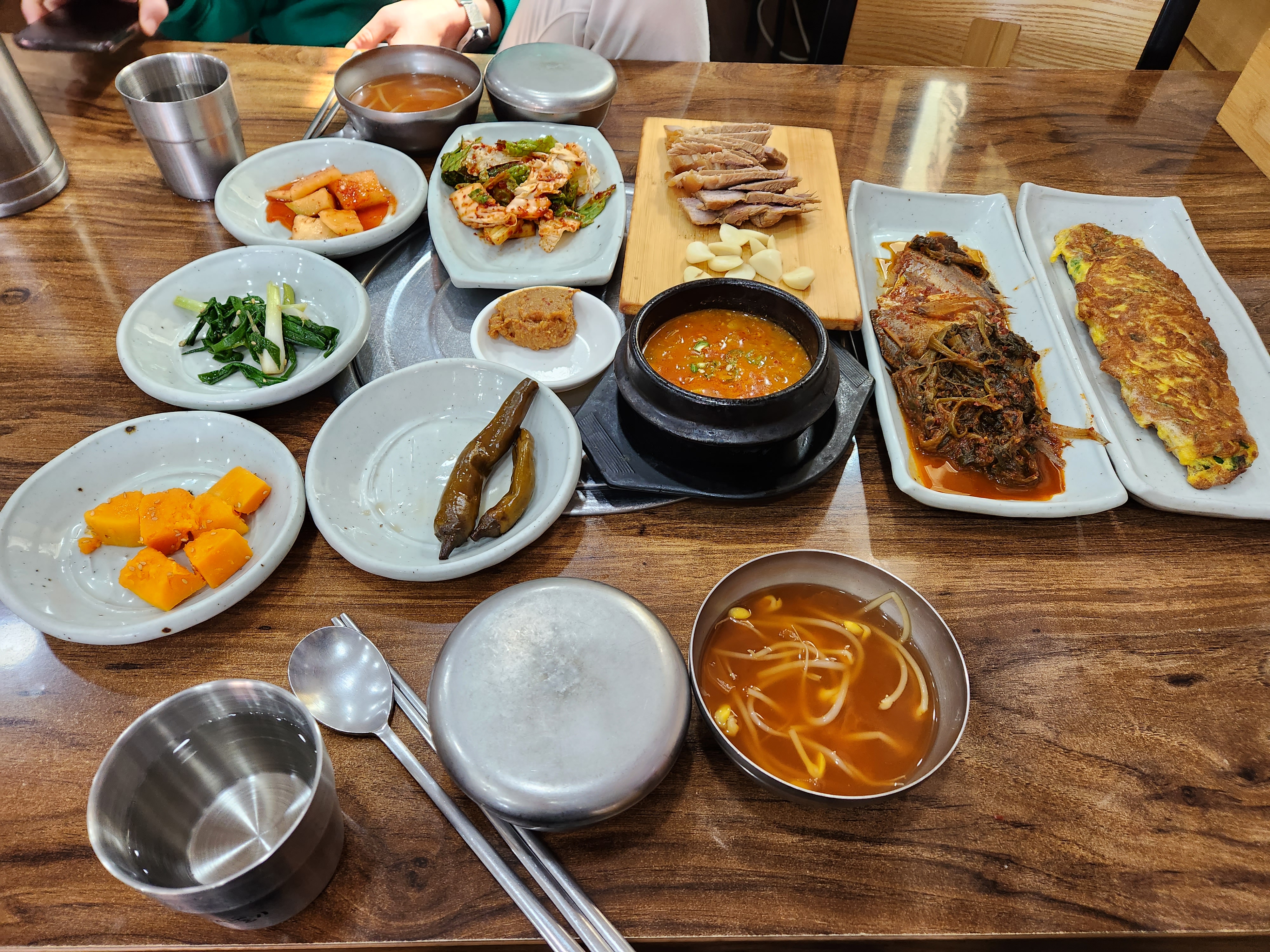 친구와 풍경정식 2인을 주문하면 이렇게 다양하고 맛있는 반찬들이 세팅됩니다.
