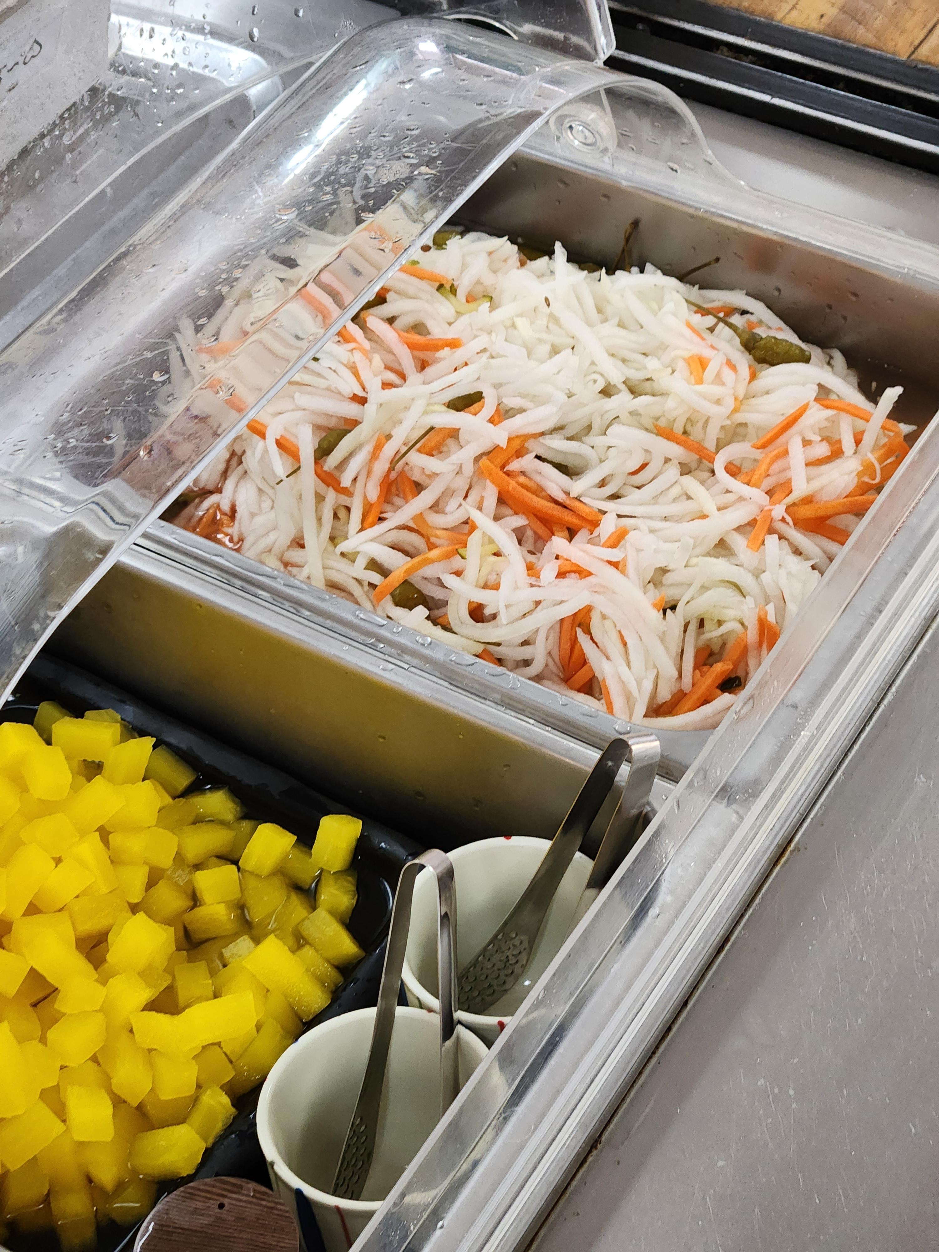 기본반찬이 있고 바로 옆에 쌈장이나 다른 종류의 작은 셀프바가 있어요.