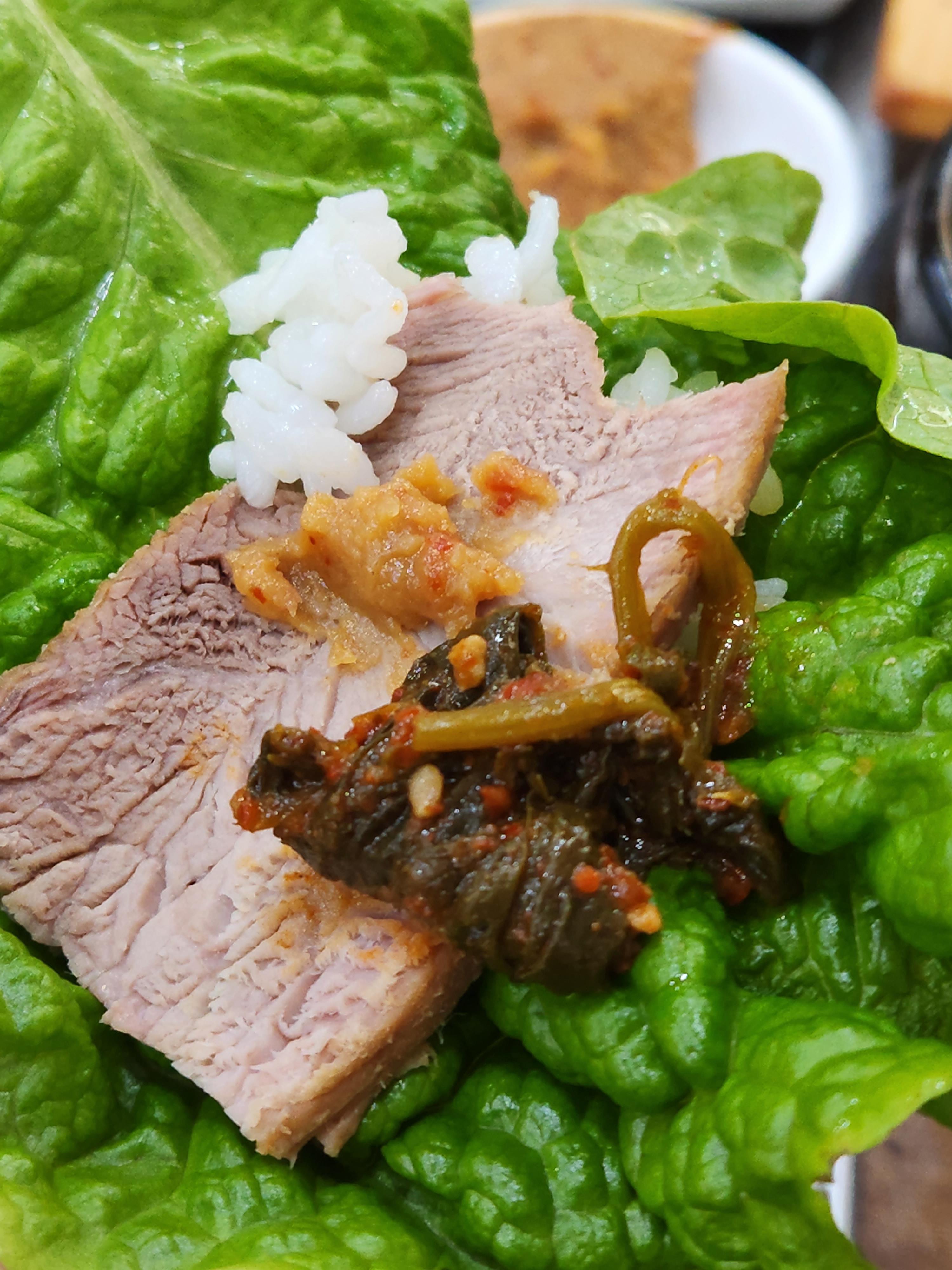 이렇게 상추쌈을 크게 한입 싸서 먹으면 너무나 꿀맛입니다.