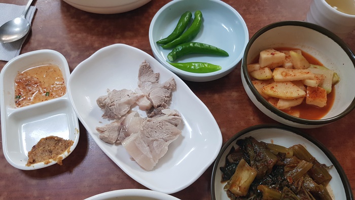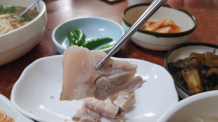 이렇게 삶은 돼지고기를 반찬으로 내어준다.